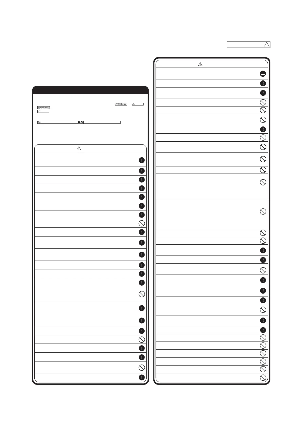 ● The precautionary items mentioned below are distinguished into two levels, and .