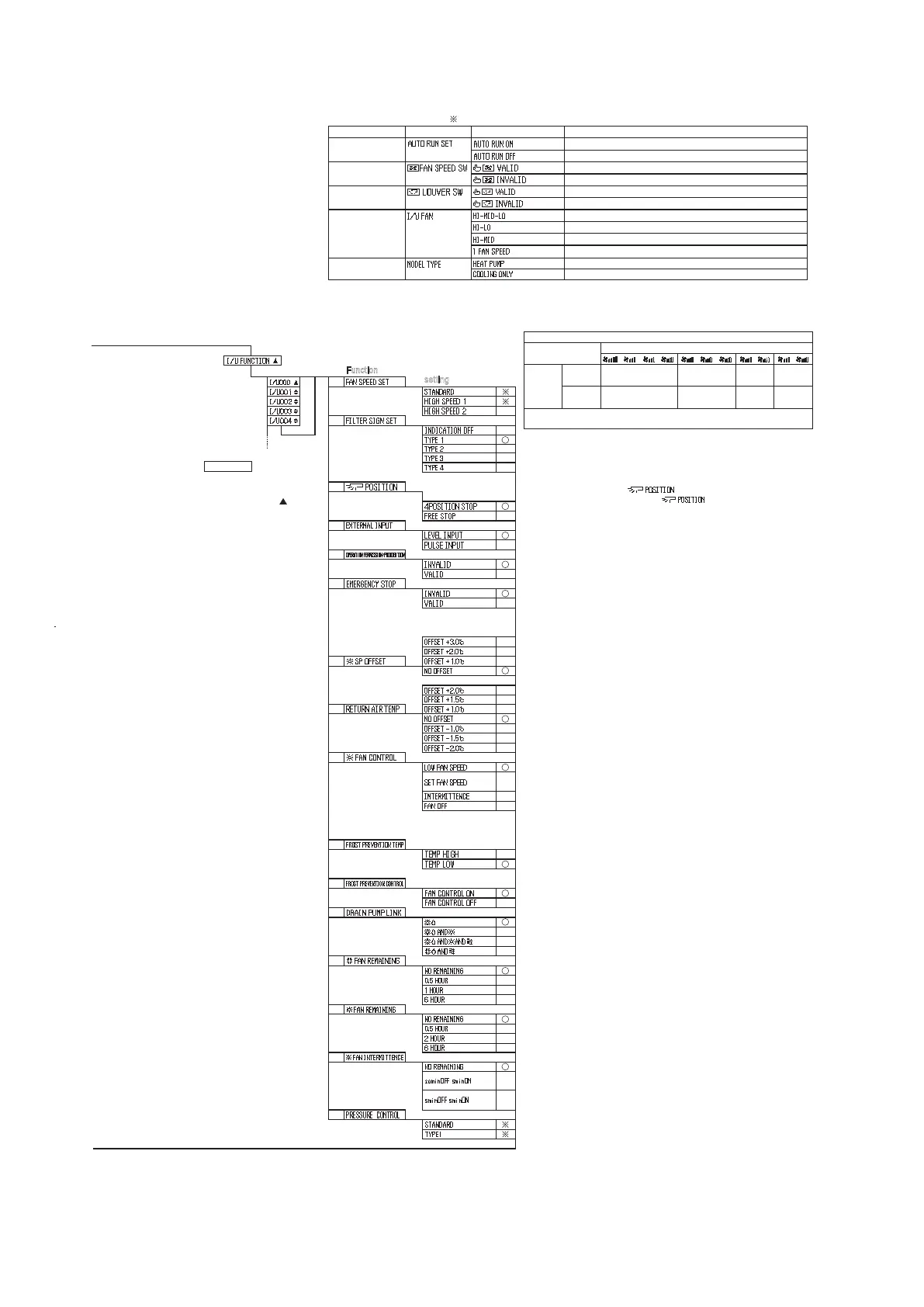 Note 1: The initial setting marked “ ” is decided by connected indoor and outdoor unit, and is automatically defined as following table.