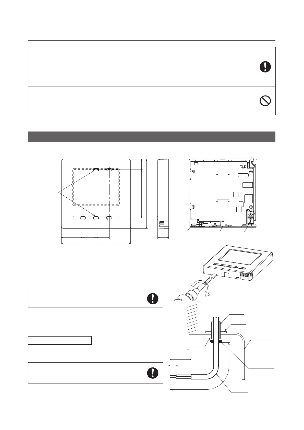 Be sure not to install R/C at a place where temperatures around the installation surface of R/C may differ largely from