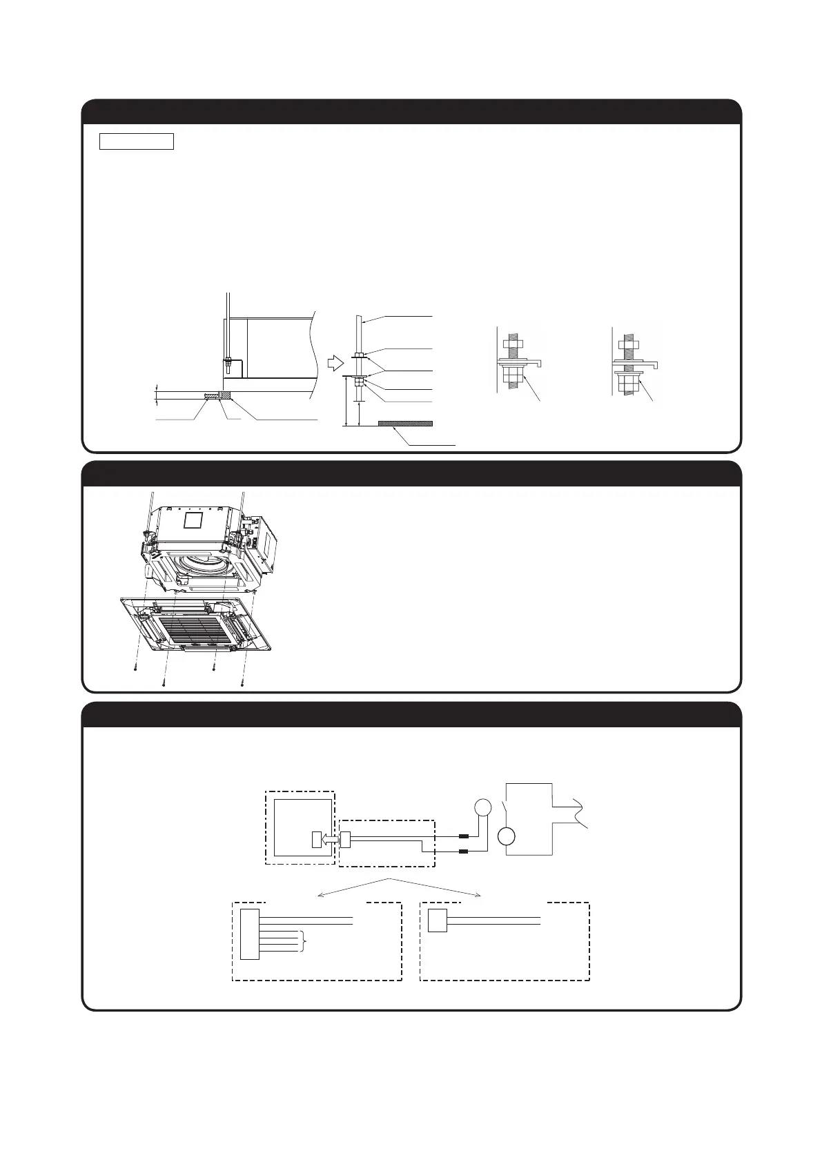 checking if the gap between the ceiling plane and the indoor unit is appropriate. (*) In order to adjust the indoor unit position, adjust the lower nuts while the upper