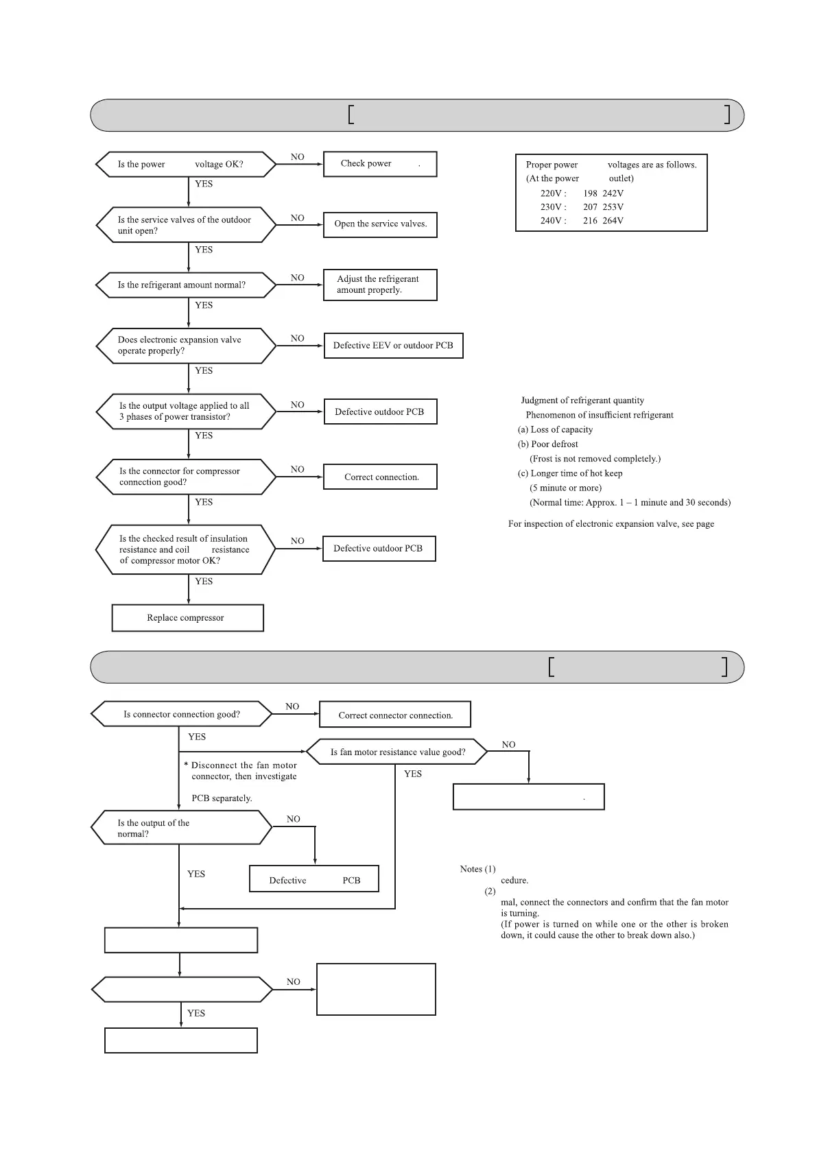 Insufficient refregerant amount, Faulty power transistor, Broken compressor wire