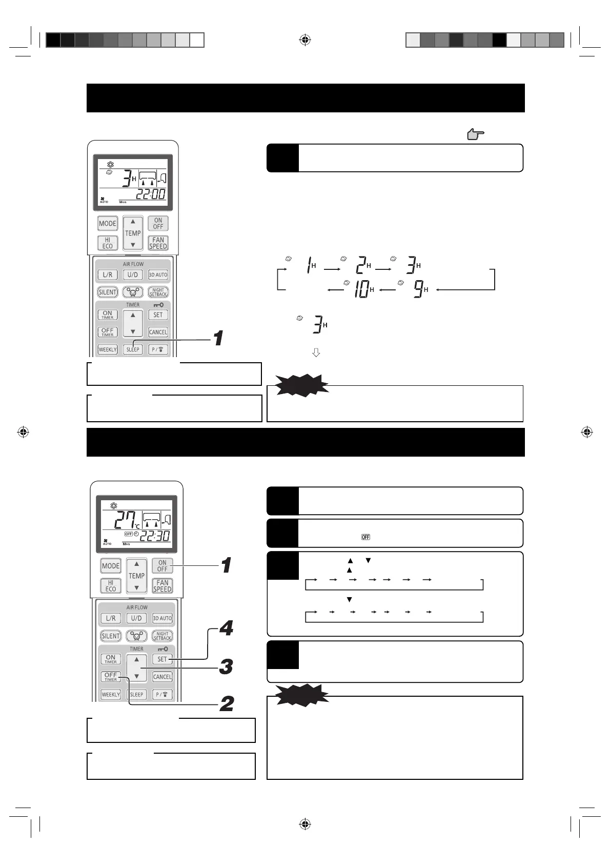 • SLEEP TIMER cannot be set simultaneously with OFF TIMER.