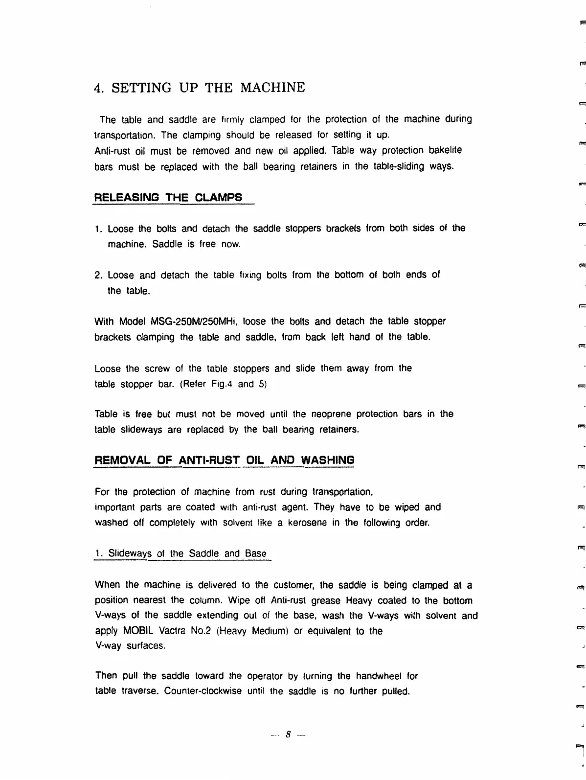 position nearest the column. Wipe off Anti-rust grease Heavy coated to the bottom