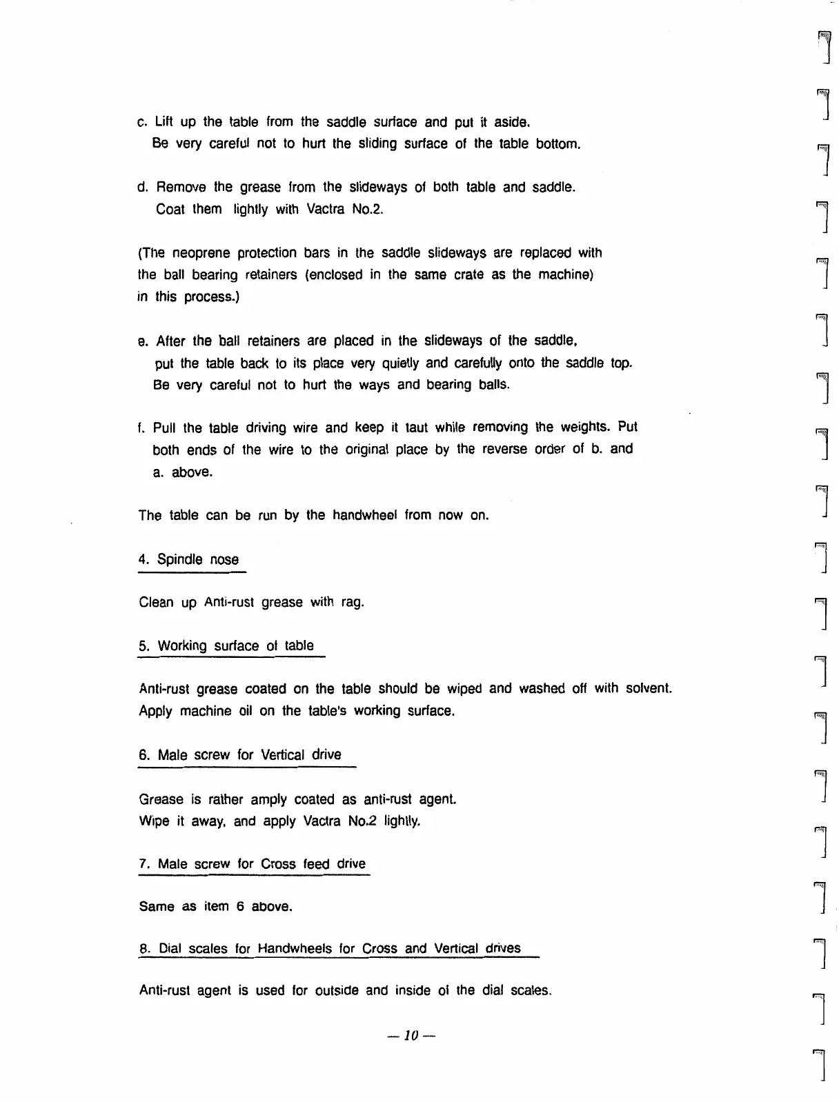 Anti-rust grease coated on the table should be wiped and washed off with solvent.