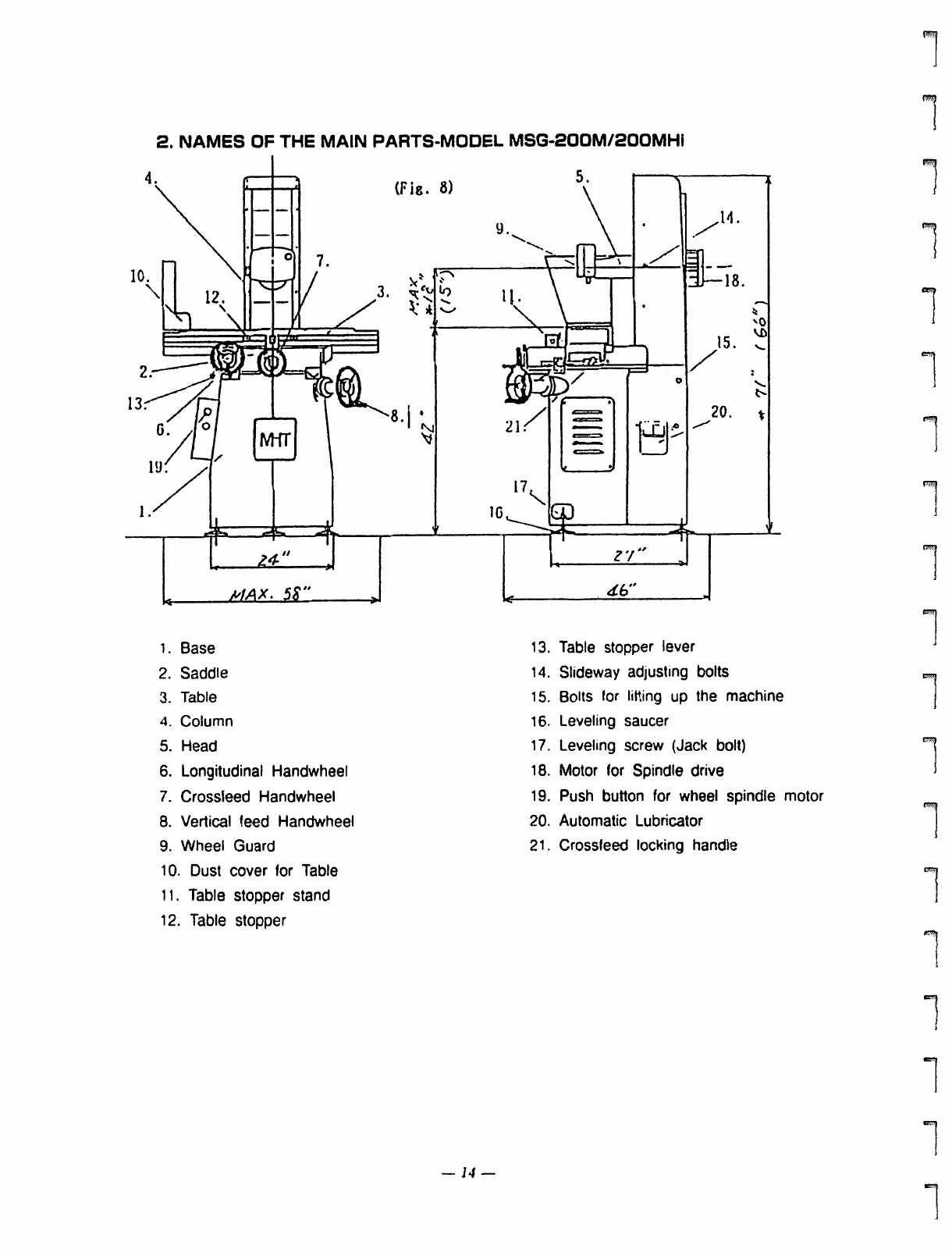 2. NAMES OF THE MAIN PARTS-MODEL MSG-200M/200MHI