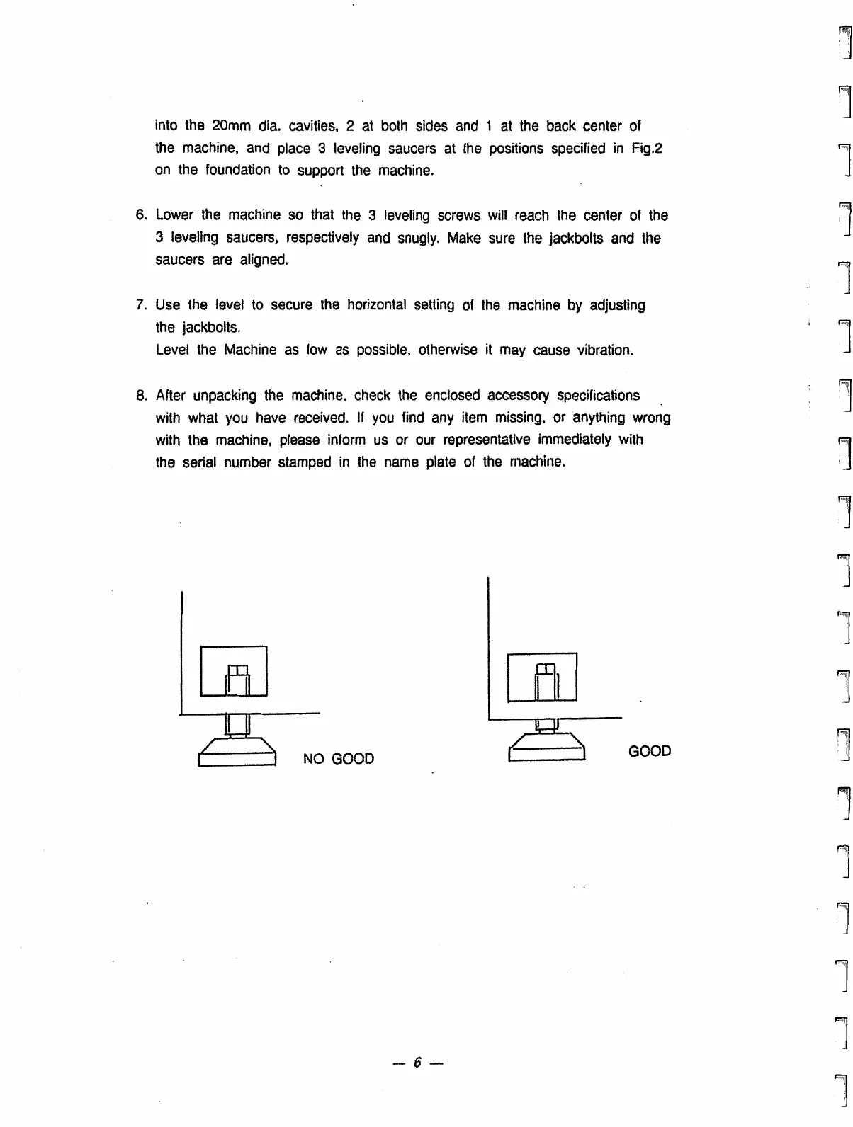 the machine, and place 3 leveling saucers at the positions specified in Fig.2