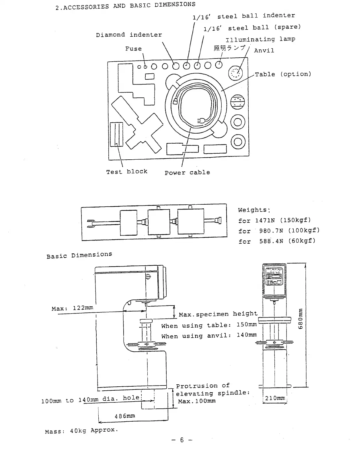 Mitutoyo ARK-600 - Accessories and Basic Dimensions; Included Accessories; Physical Dimensions and Mass