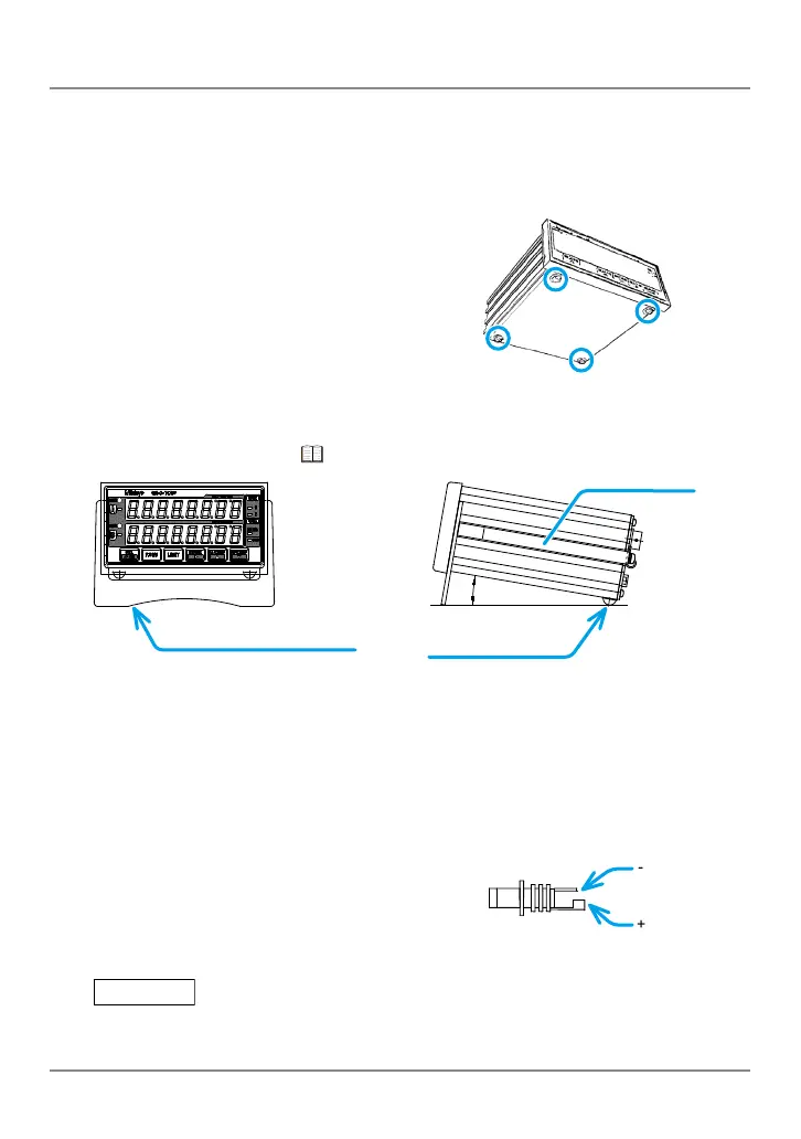 Attach the supplied rubber feet (4 pieces) to the points marked by circles in the