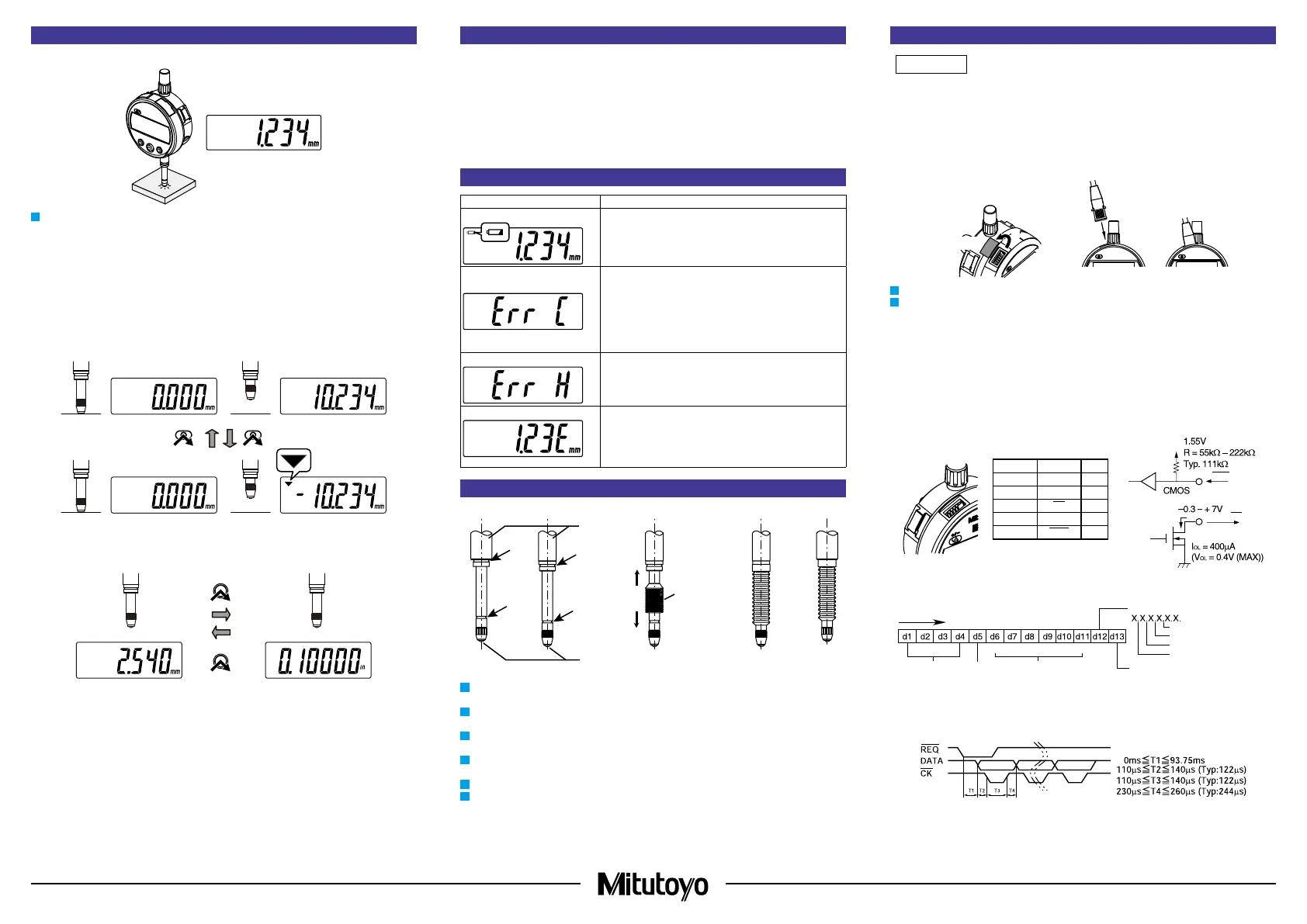 For use with a Mitutoyo linear gage counter (EC-101D, EG-101D, EH-102D) connected, set the