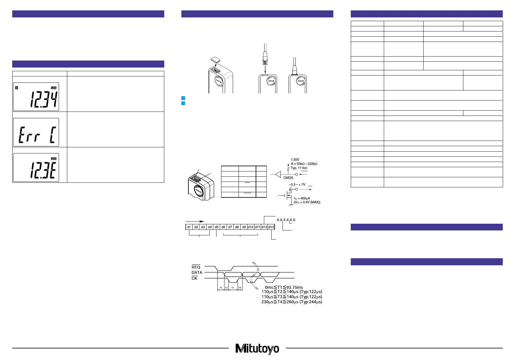 The displayed value can be output to a device supporting Digimatic output format by connecting