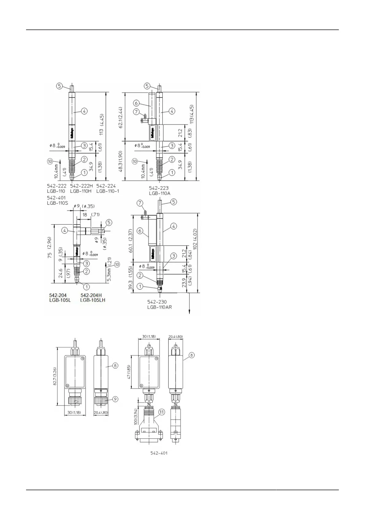 Mitutoyo LGB - PART NAMES AND DIMENSIONS