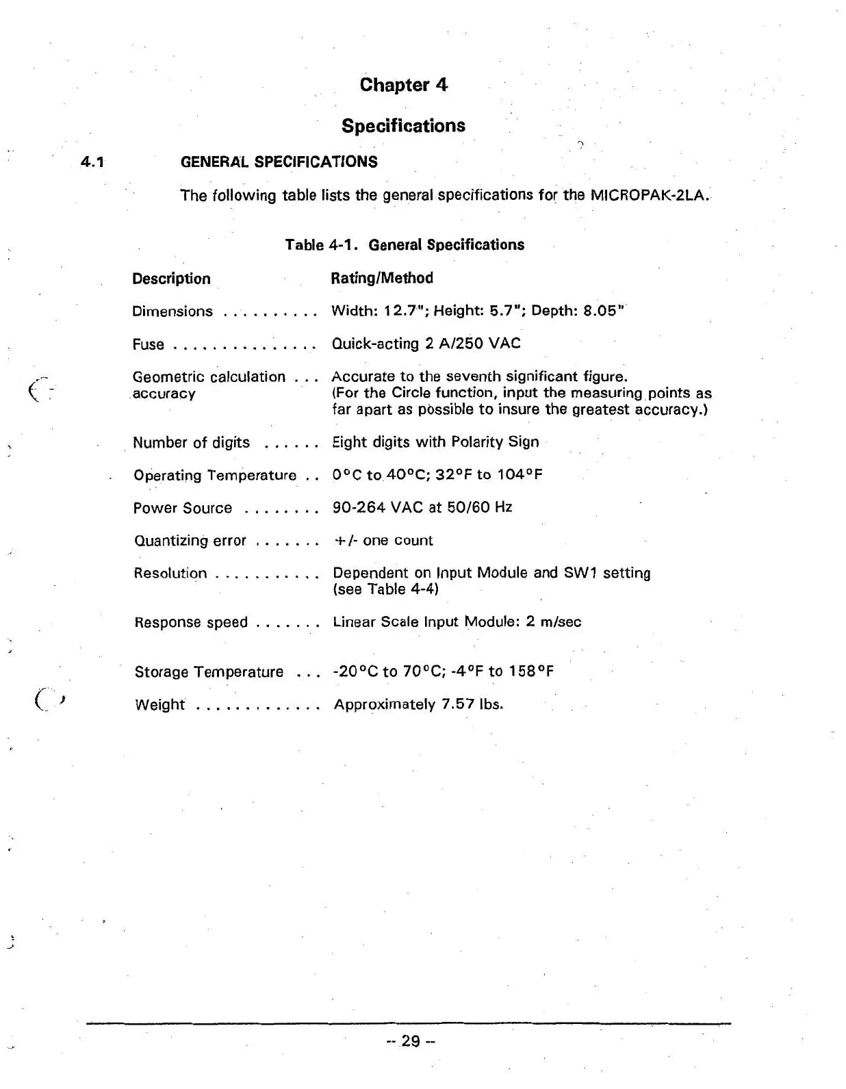General Specifications