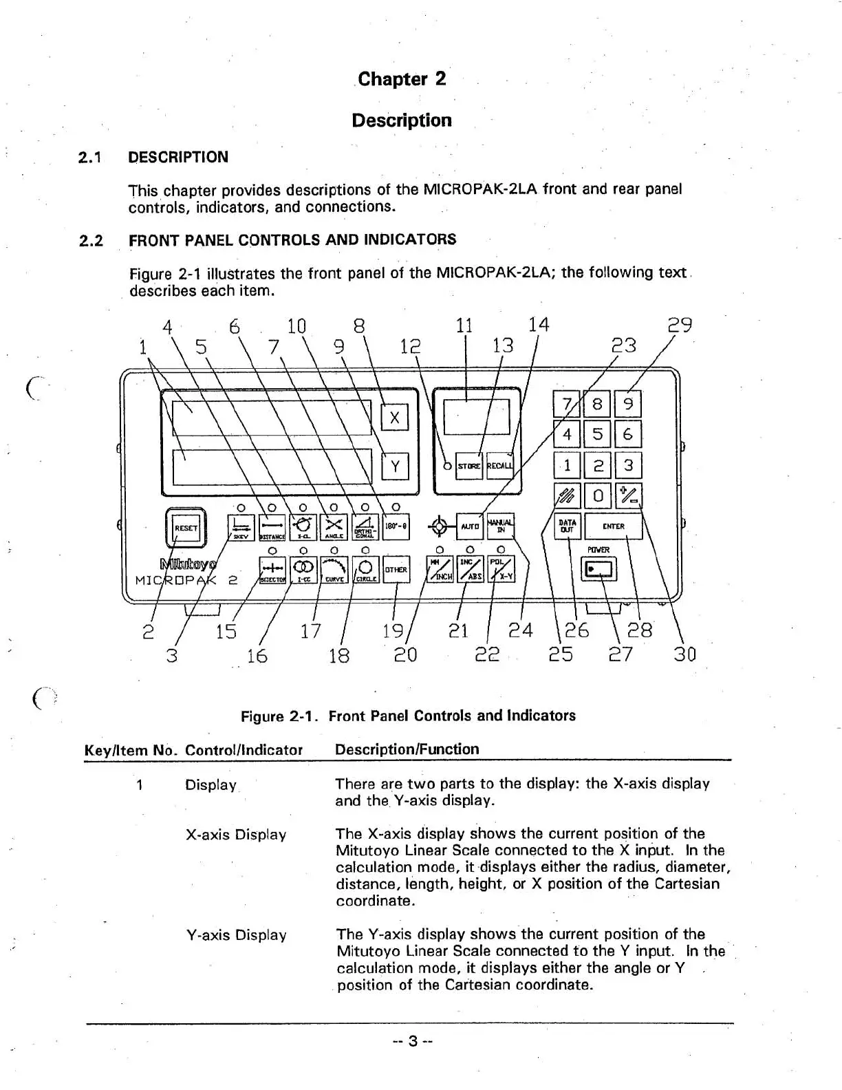 illustrates the front panel of the MICROPAK-2LA; the following text