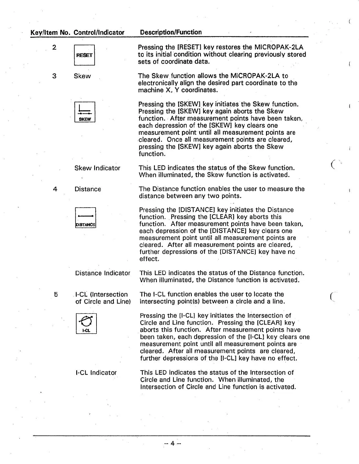 Keylltem No. Controlllndicator Description/Function