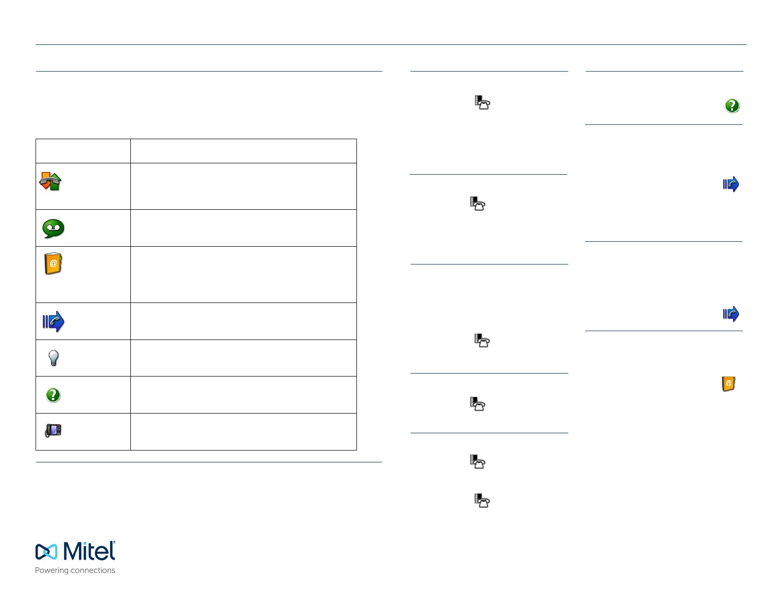 contains quick launch icons for one-touch access to the most commonly-used phone