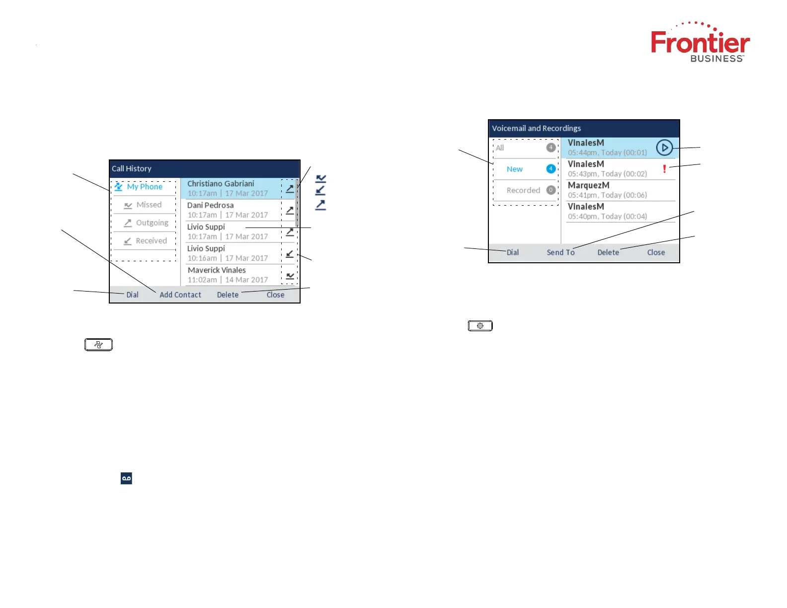 Note: Voicemail and visual voicemail functionality must be configured by your System