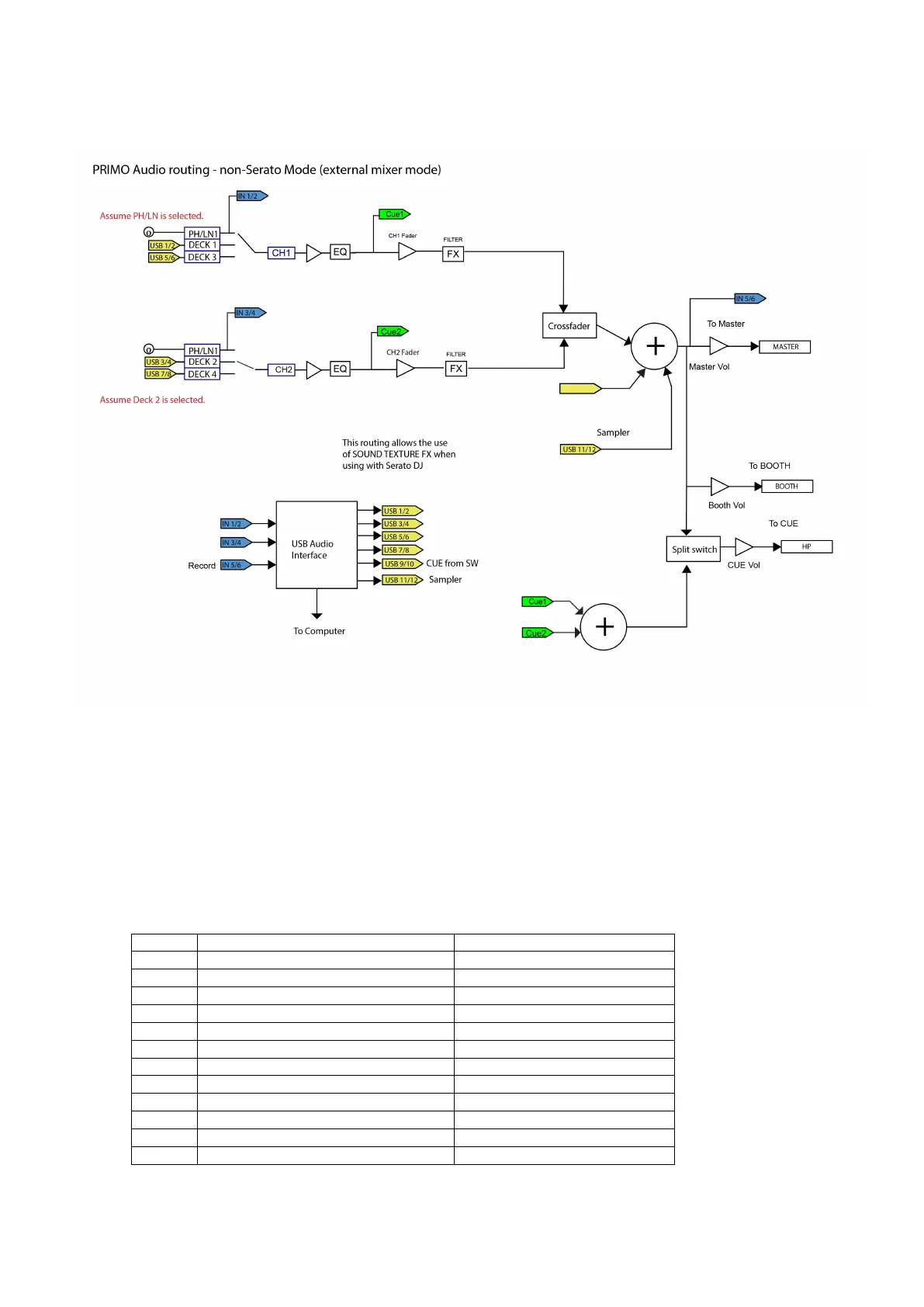 En el enrutamiento no Serato, el hardware de Primo funciona como un control MIDI con una mezcladora