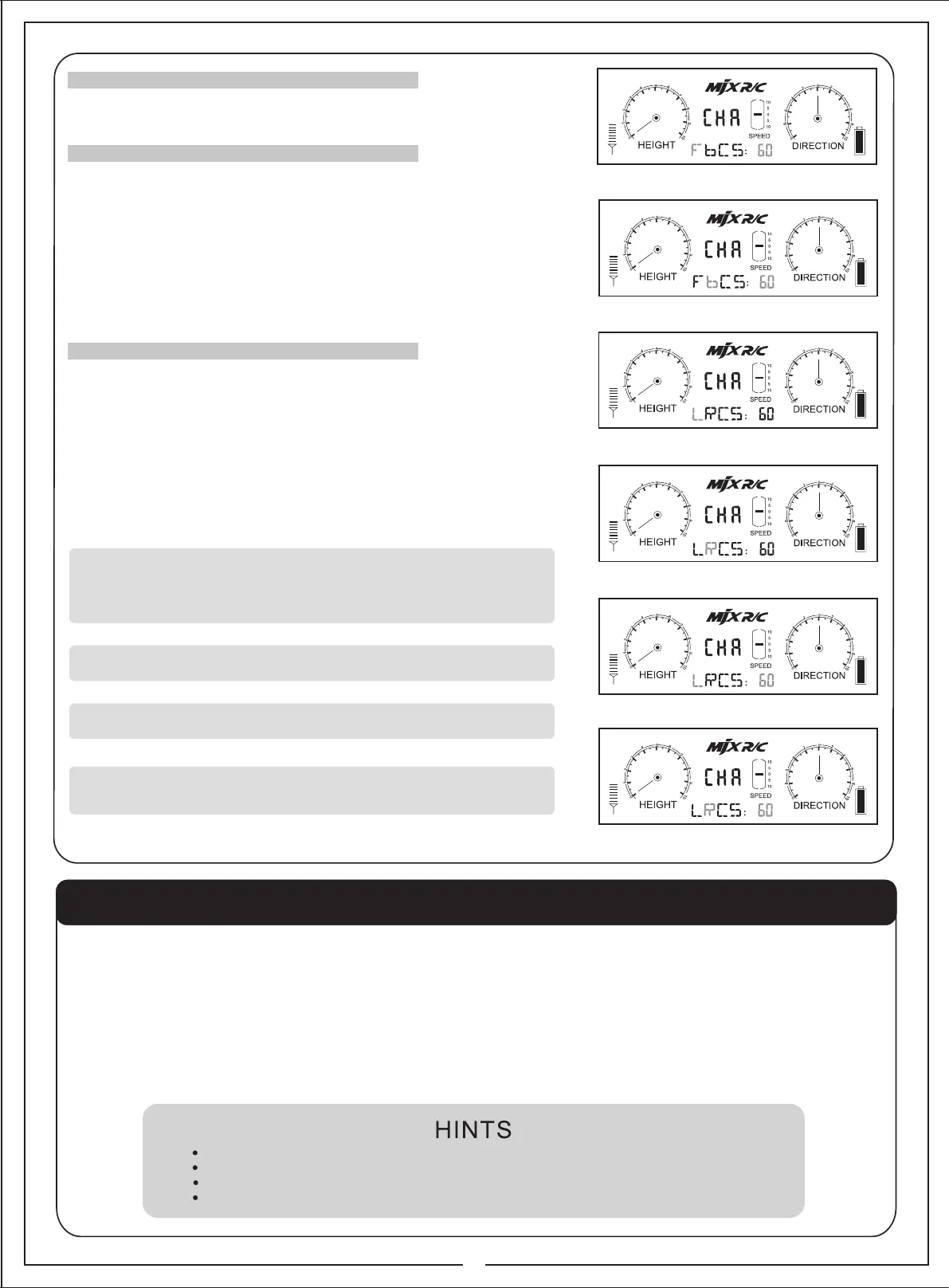 Push up/down the “up/down speed setting” key, the helicopter will ascend/descend at