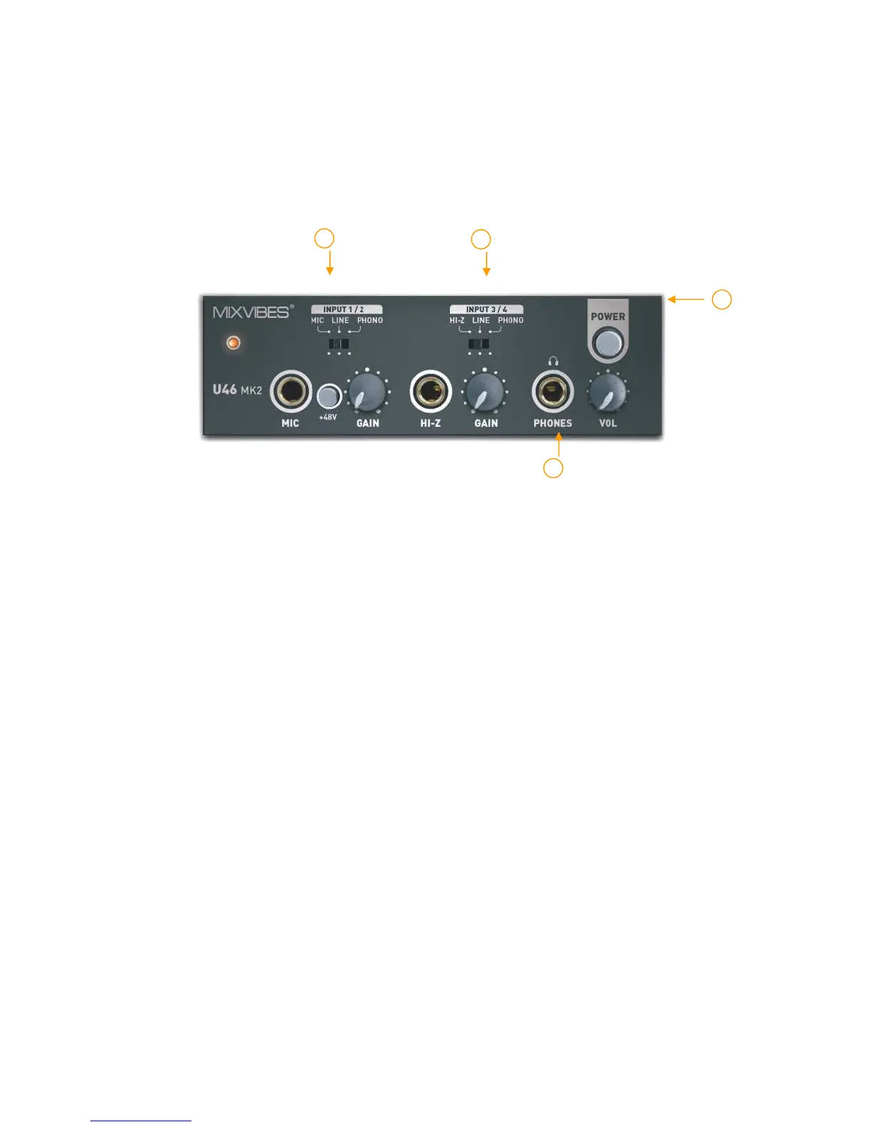 - Gain Kontrolle für den Mikrofoneingang: Regelt den Eingangspegel des Mikrofons.
