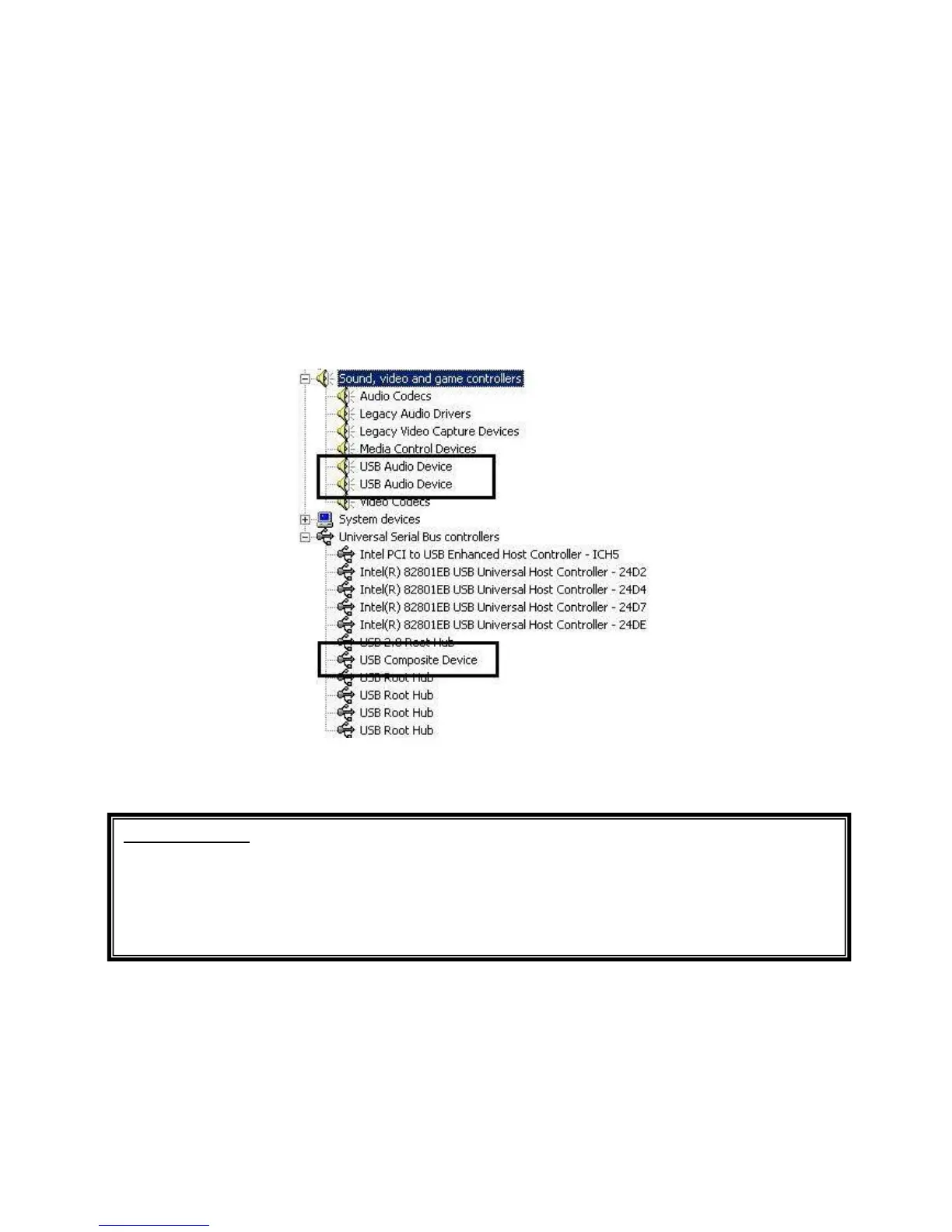 System -> Device Manager”. Confirm that two (2) instances of “USB Audio Device” are listed