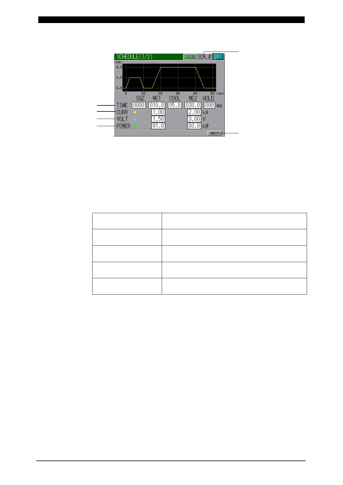 The first weld time for which weld current is