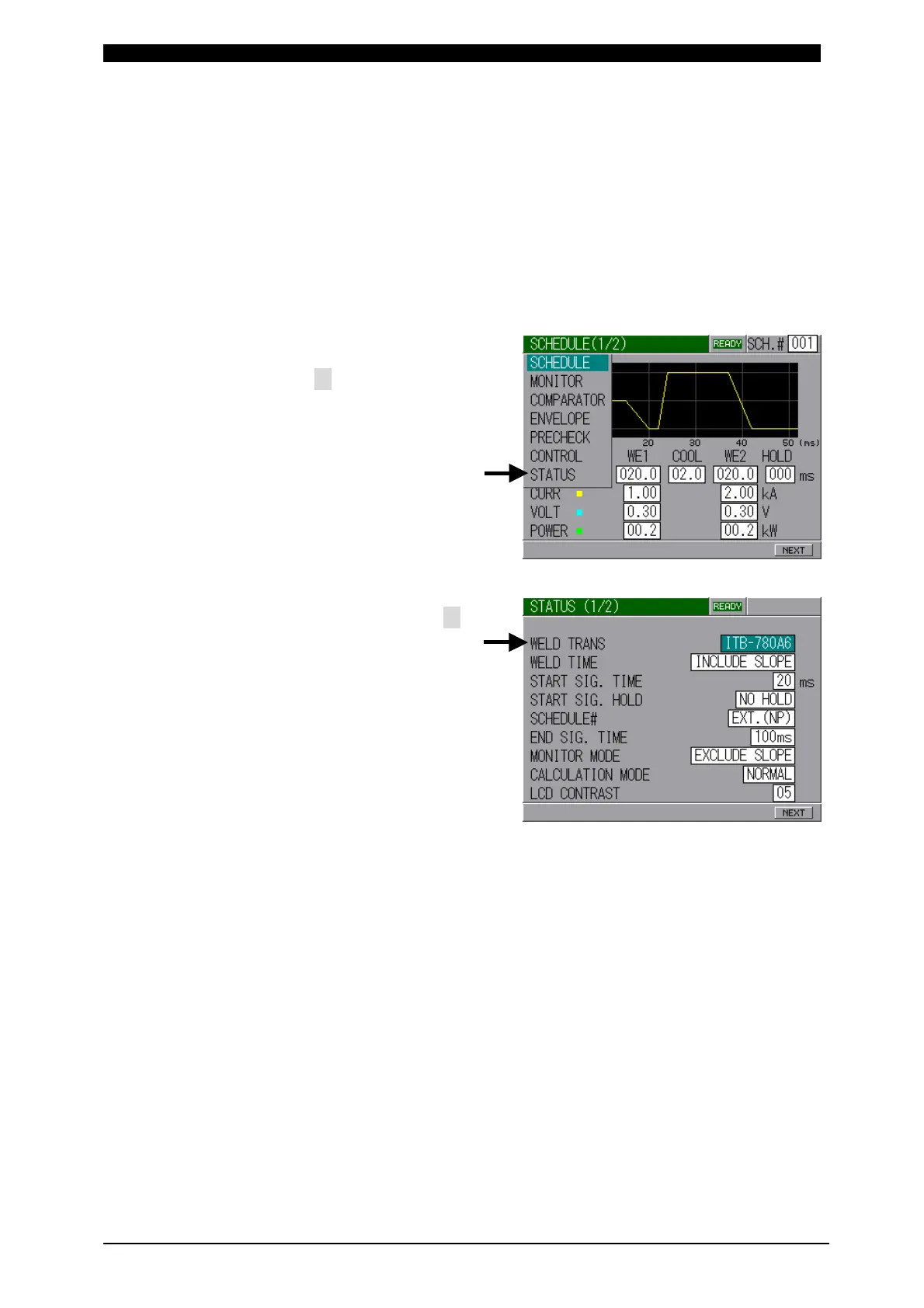 Move the cursor ( ) to STATUS and