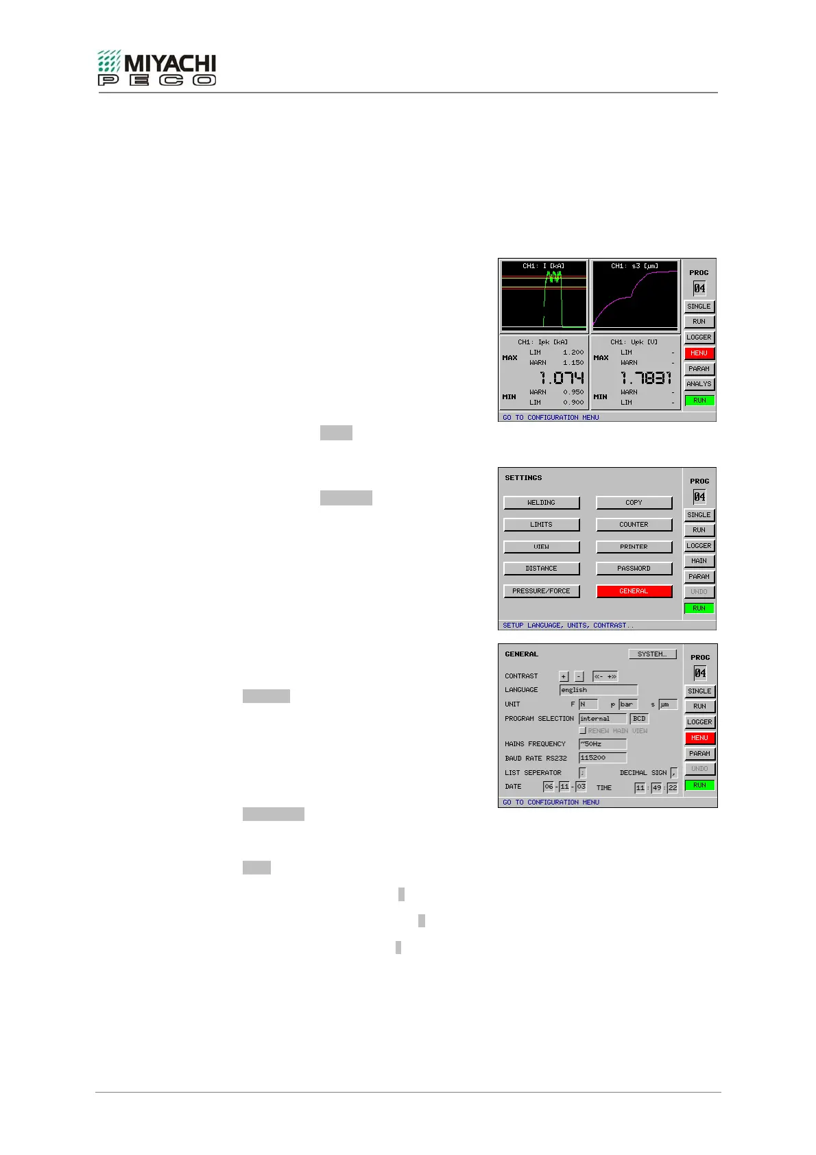 • Select button GENERAL with the