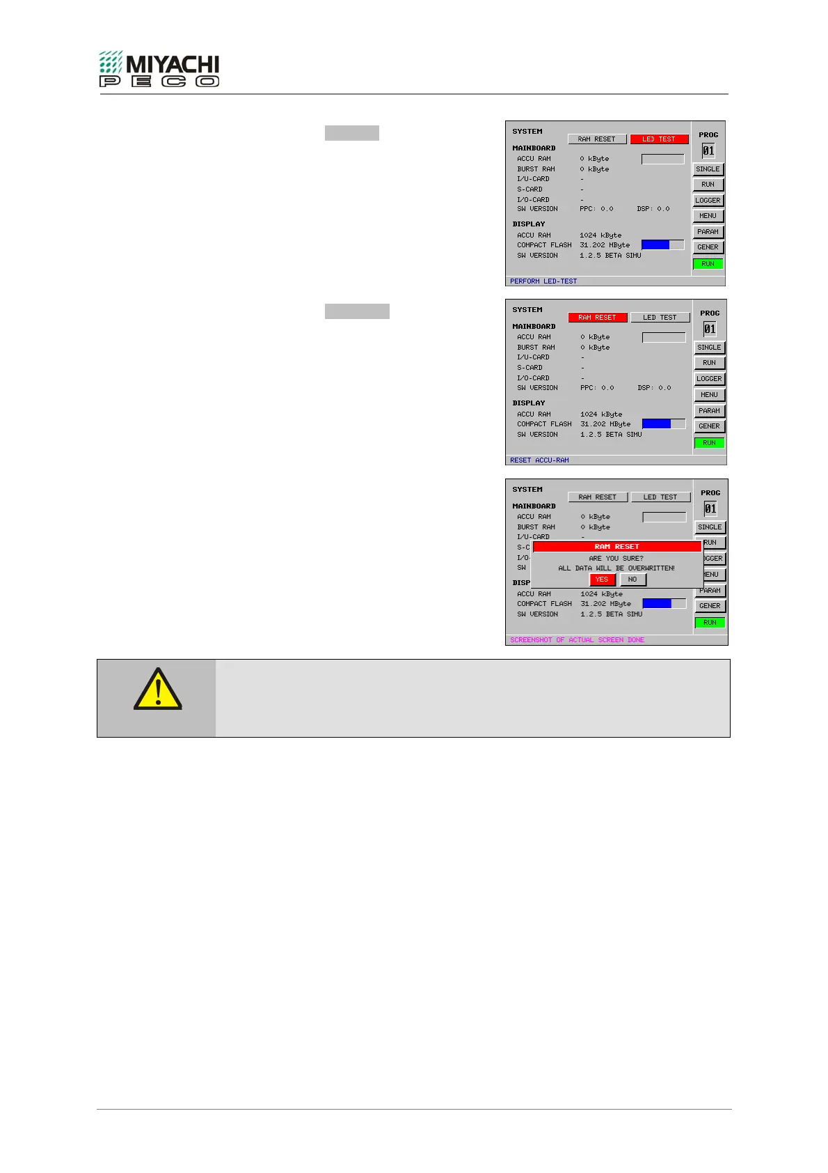 If you perform RAM RESET, all set parameters will be lost!