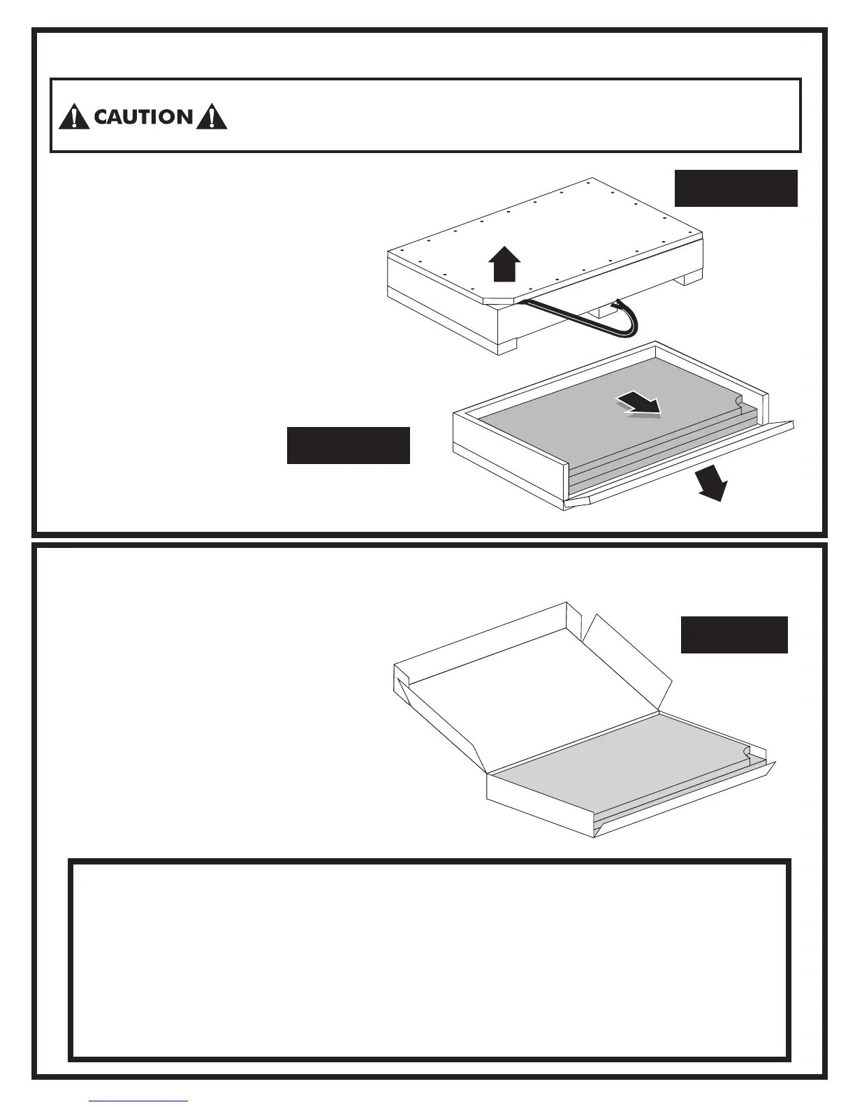 AT ONCE! USE CAUTION WHEN HANDLING CRATE PARTS!