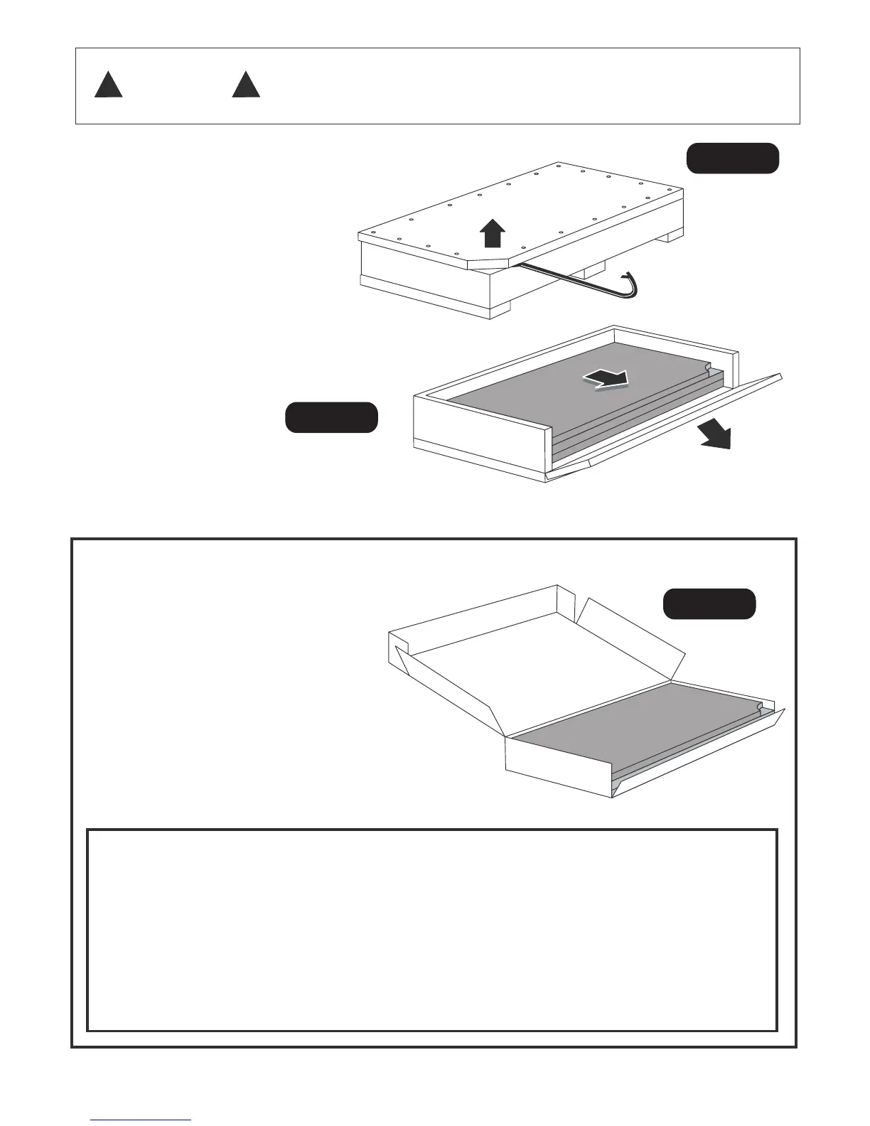 HAMMER AT ONCE! USE CAUTION WHEN HANDLING CRATE PARTS!