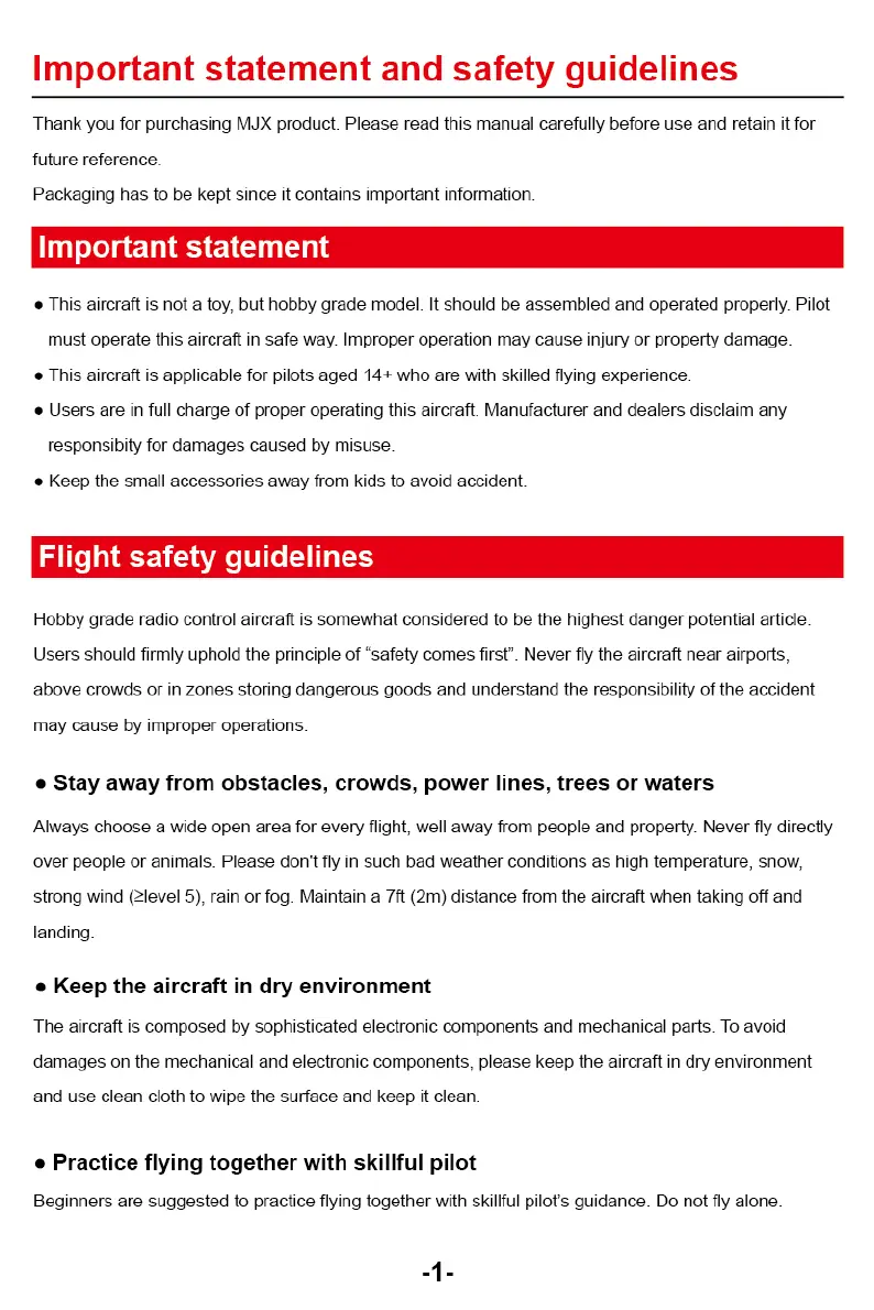 Thank you for purchasing MJX product. Please read this manual carefully before use and retain it for