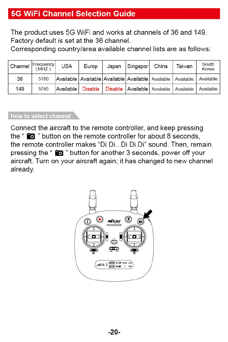 aircraft. Turn on your aircraft again; it has changed to new channel