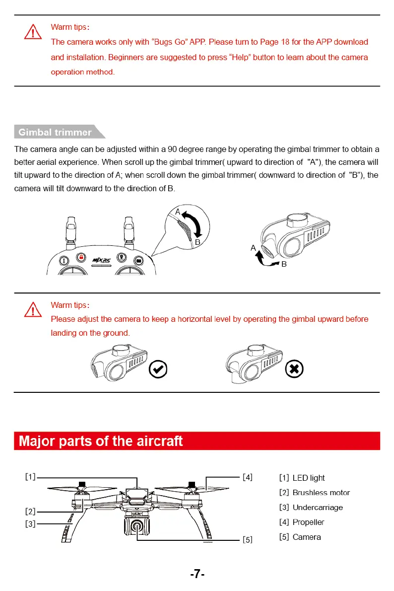 better aerial experience. When scroll up the gimbal trimmer( upward to direction of "N'), the camera will
