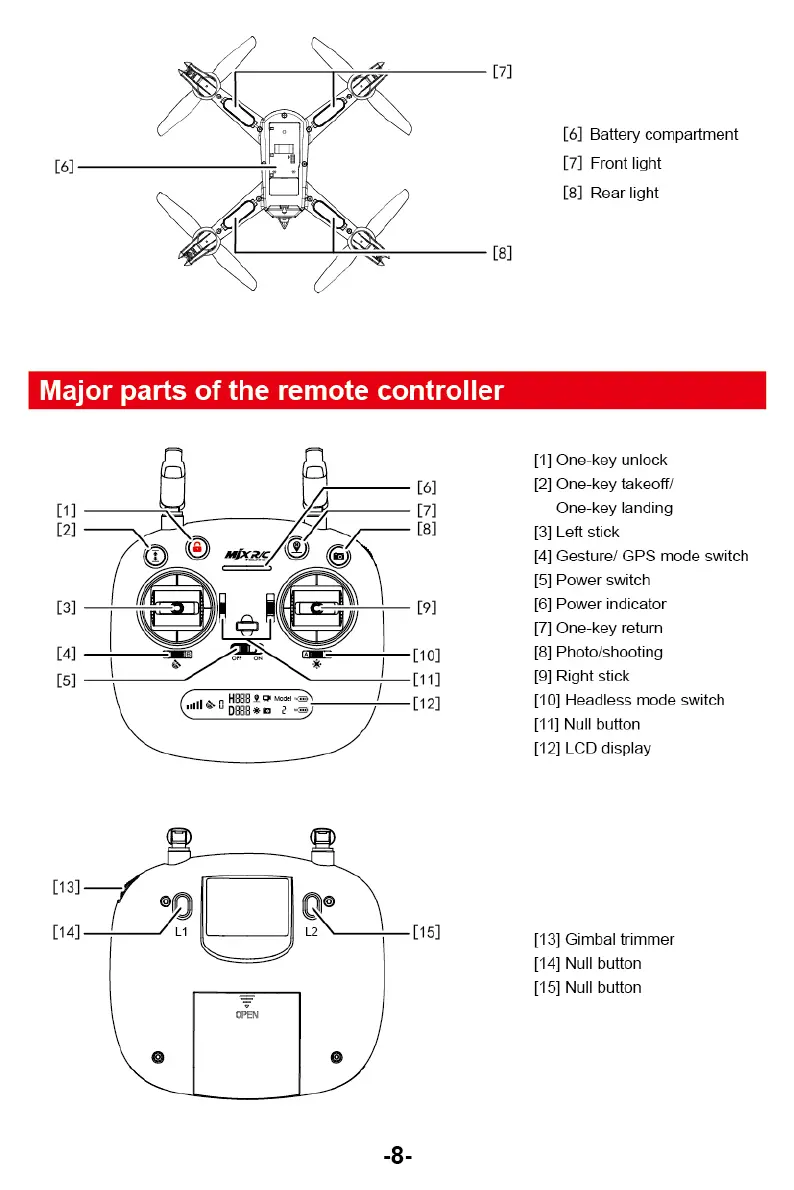 MJX 5W - Remote Controller Overview; Major Remote Controller Parts
