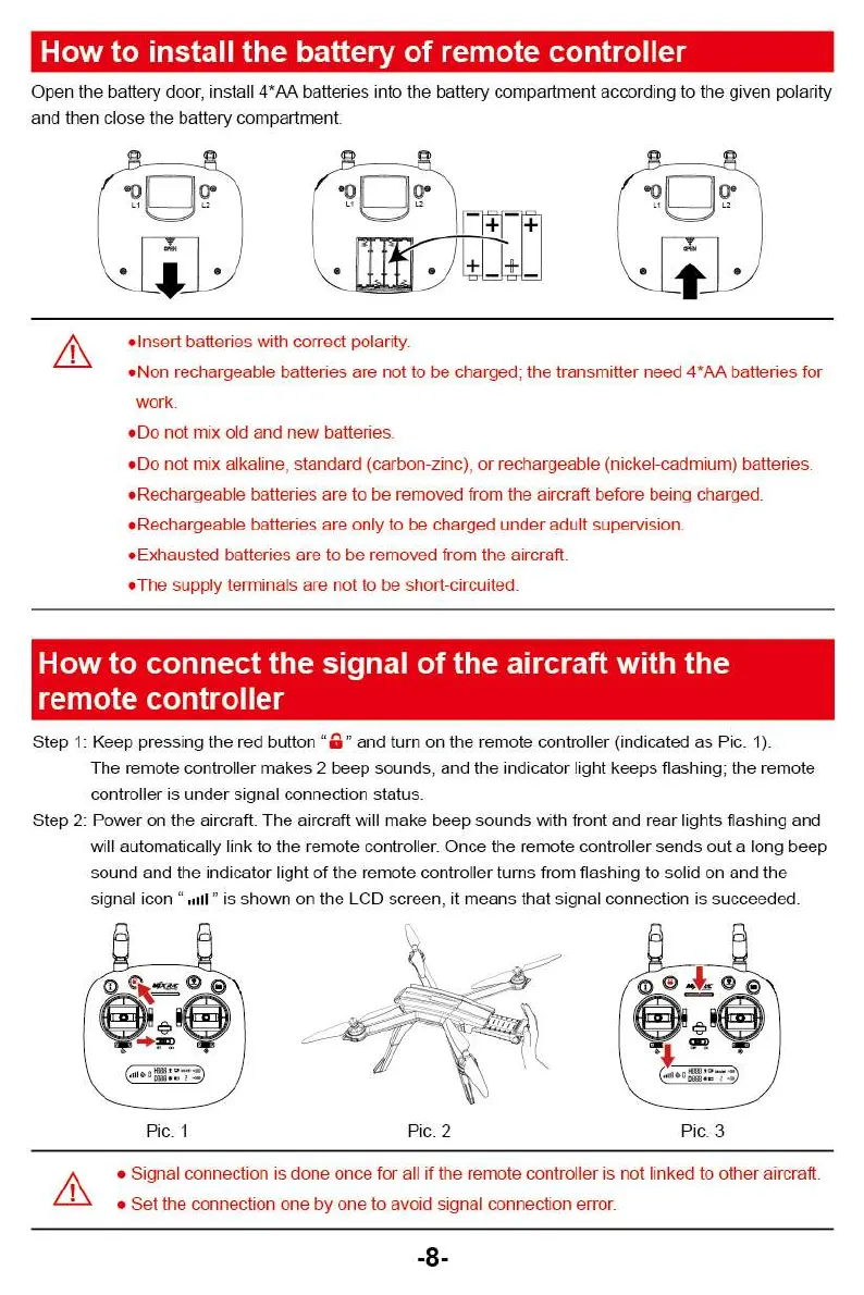 Signal connection is done once for all if the remote controller is not linked to other aircraft.