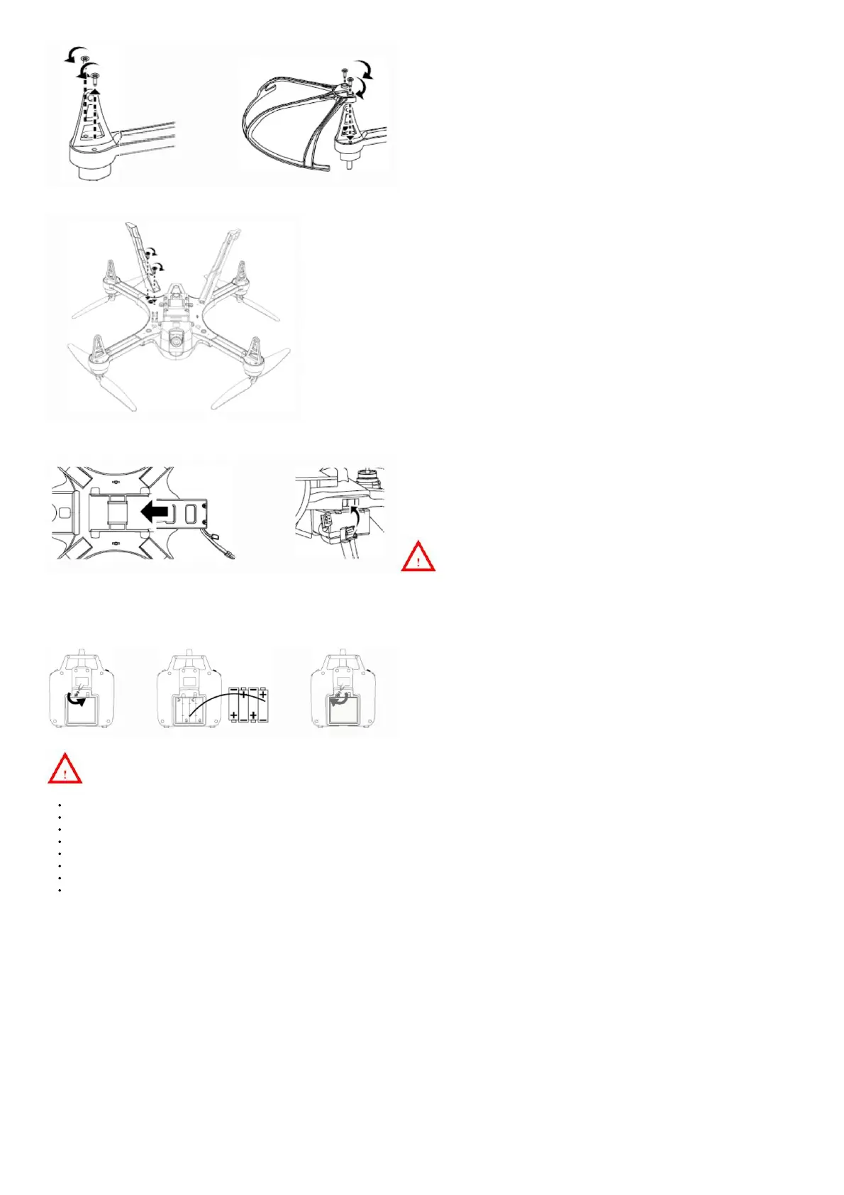 Insert the high landing gear plug into the socket locating at the bottom of the aircraft, align the 2 screws positions, and fix the high landing gear by screwing clockwise.