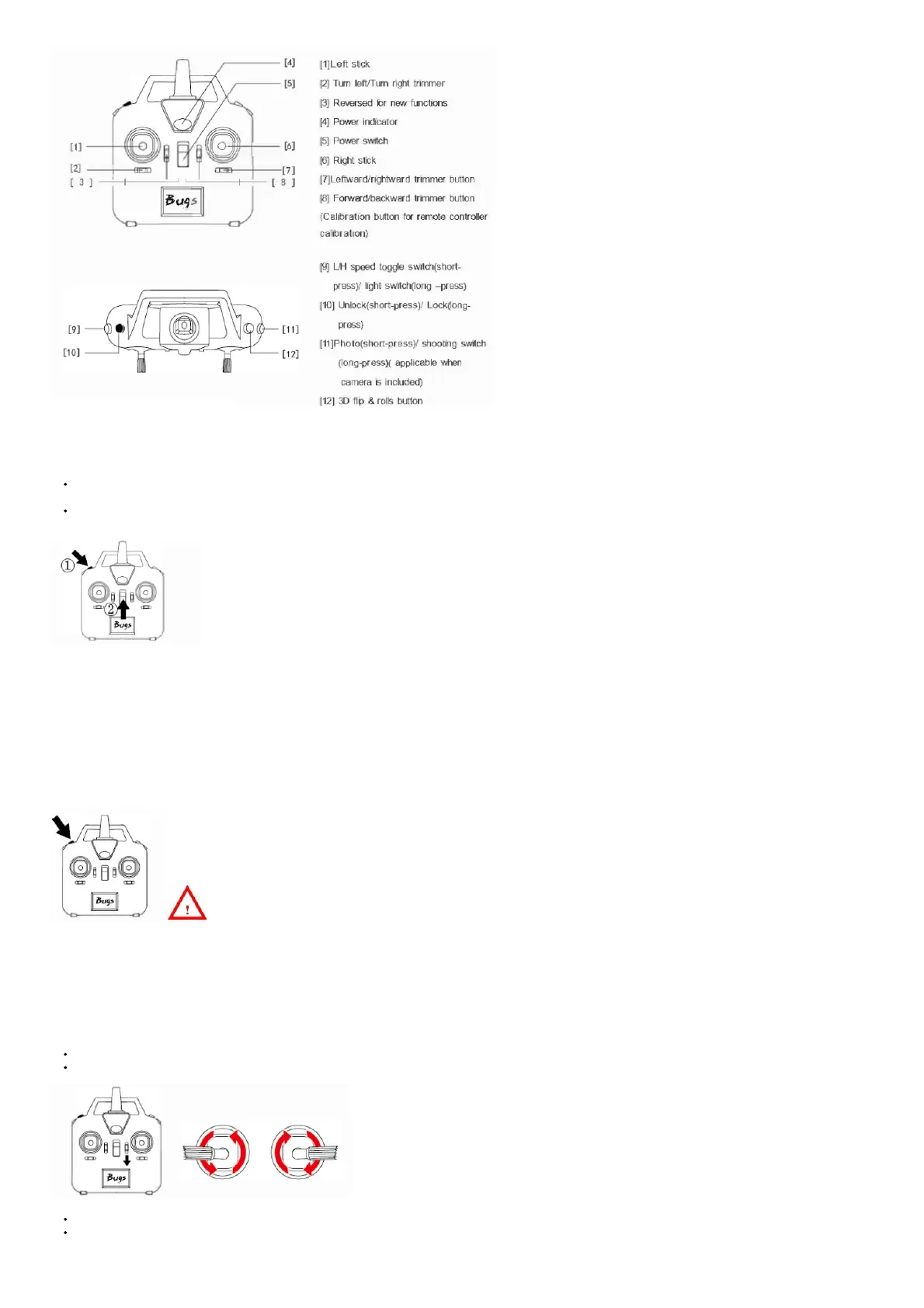 Warnings: The throttle control stick should be pushed to the bottom position when long-press the red button to lock the aircraft. Otherwise, the