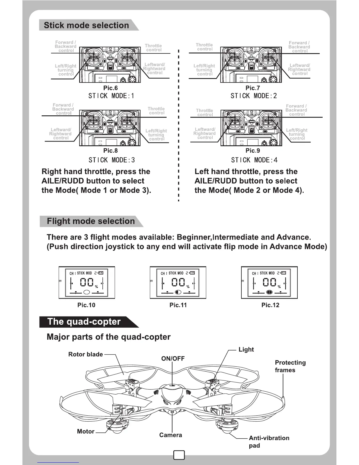 MJX X300C - Quad-copter Control and Components; Stick Mode Selection Guide; Flight Mode Selection