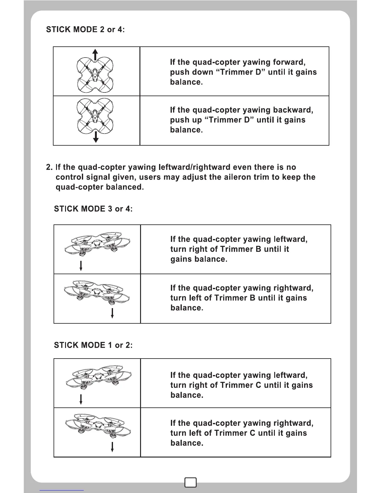 MJX X300C - Advanced Trimmer Adjustments; Sideward Drift Correction; Yaw;Spinning Correction