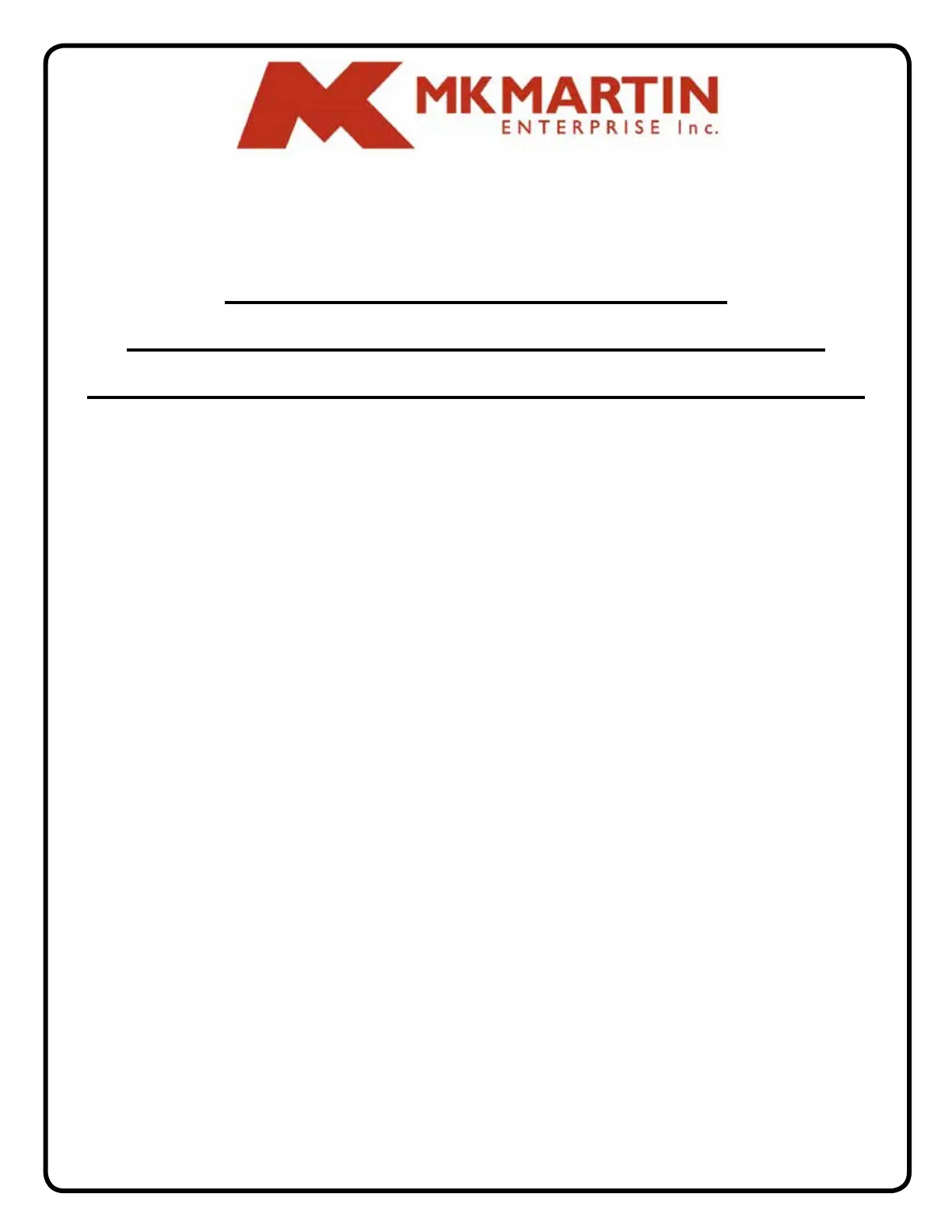 3950 Stef er Rd. Elmira Ontario, Canada N3B 2Z3 Email : sales@mkmartin.ca Fax : (519)-664-3695 Tel : (519)-664-2752