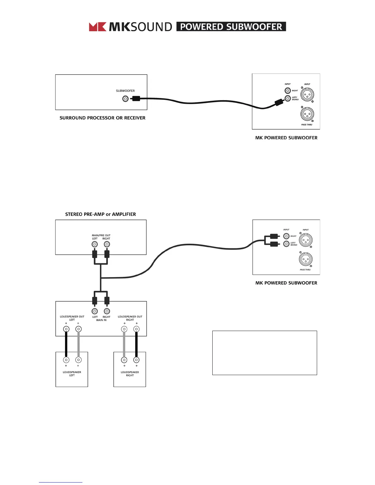 the subwoofer. Use both the left and right inputs of the subwoofer in this case – these inputs are