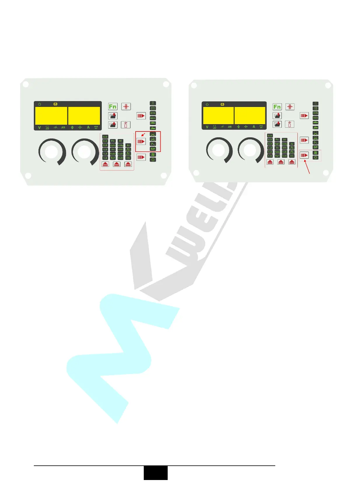 (10) Carefully open the valve of the gas (11) Select TIG function using the button.