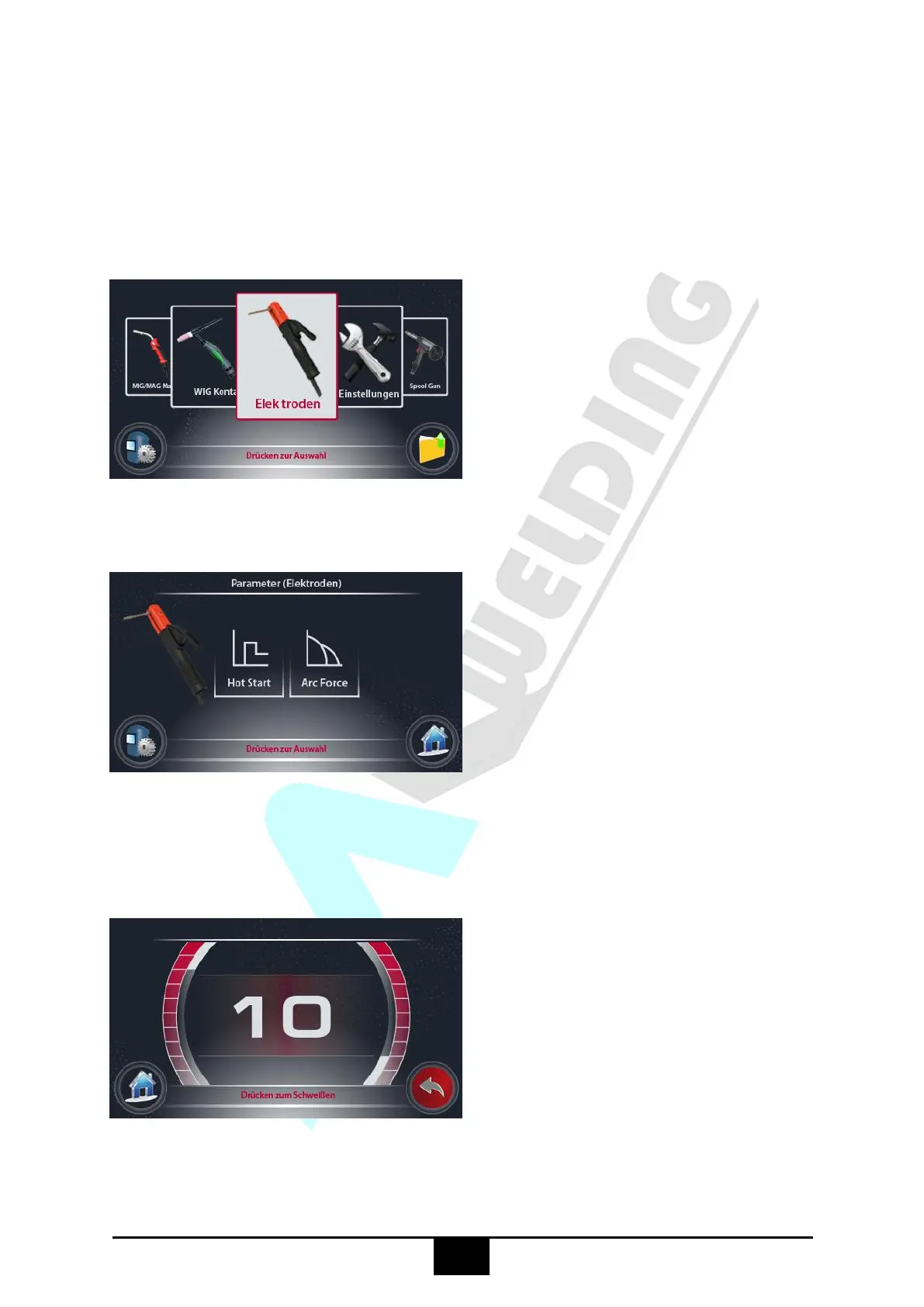 Wollen Sie direkt weiter zum Schweißmenü Drücken Sie die Home Taste (Bild 2, 2)