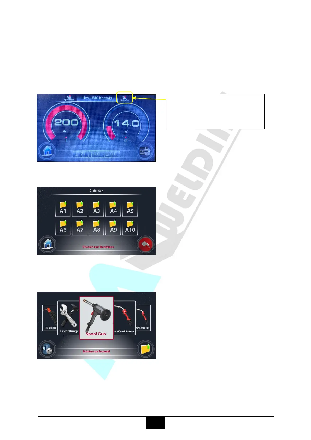 Möglichkeit 1, man befindet sich in einem Schweißmenü (z.B. Bild Schweißmenü WIG)