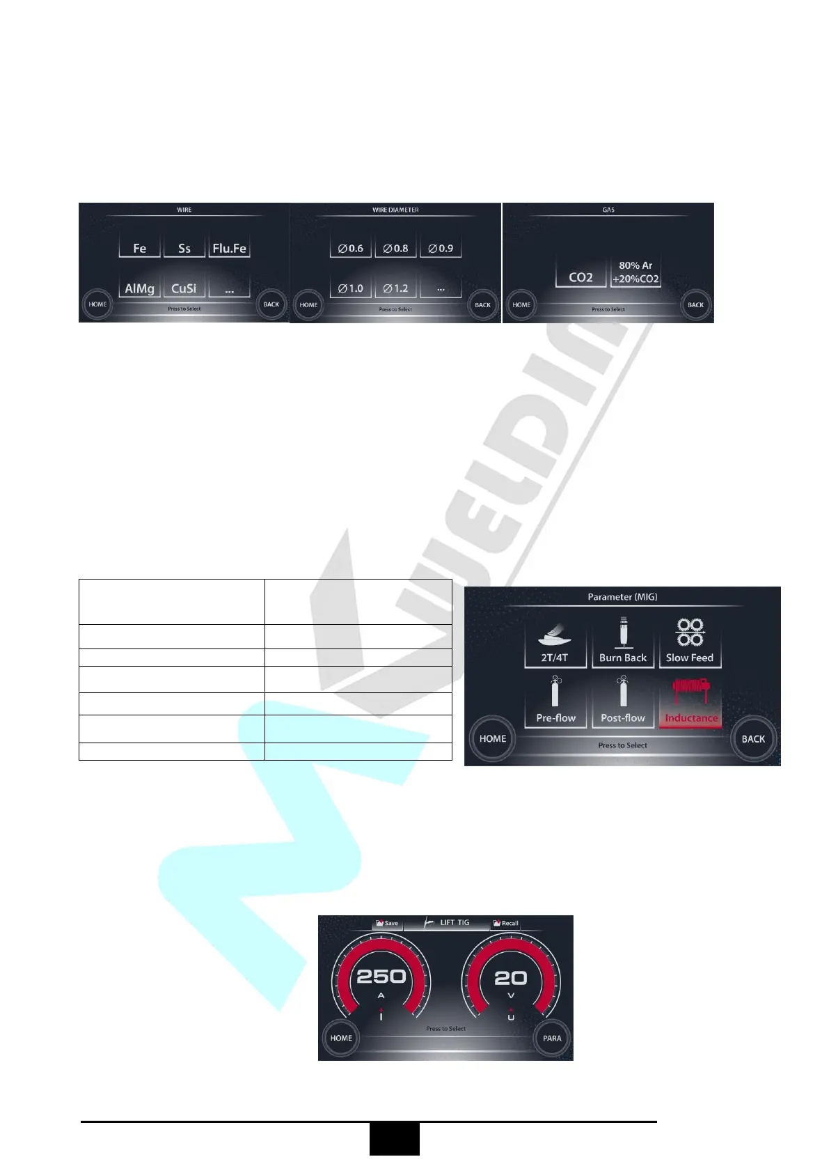 1) In the main interface, press the MENU key to enter the synergic parameter selection interface;