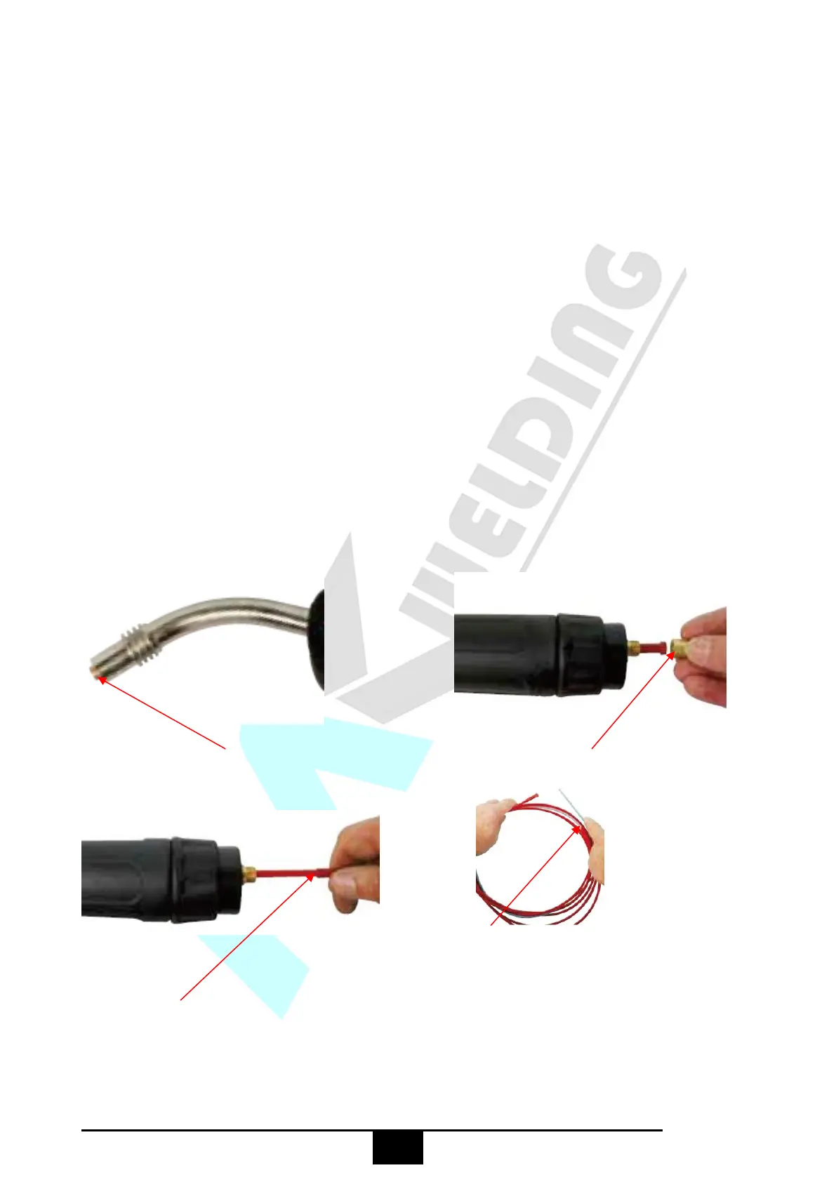 way through and out the torch neck end. Avoid kinking the liner, kinking liner it will make it no good