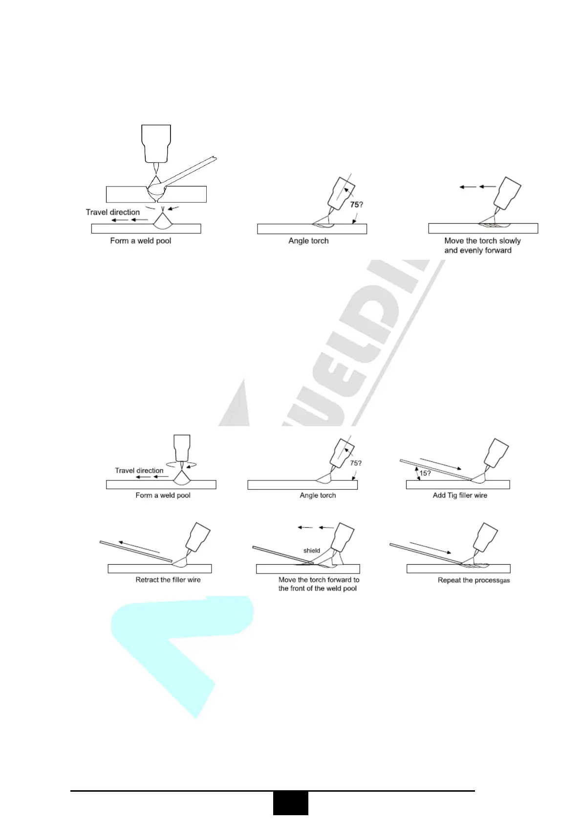 weld pool as the torch is moved forward. Also a dabbing technique can be used to control the