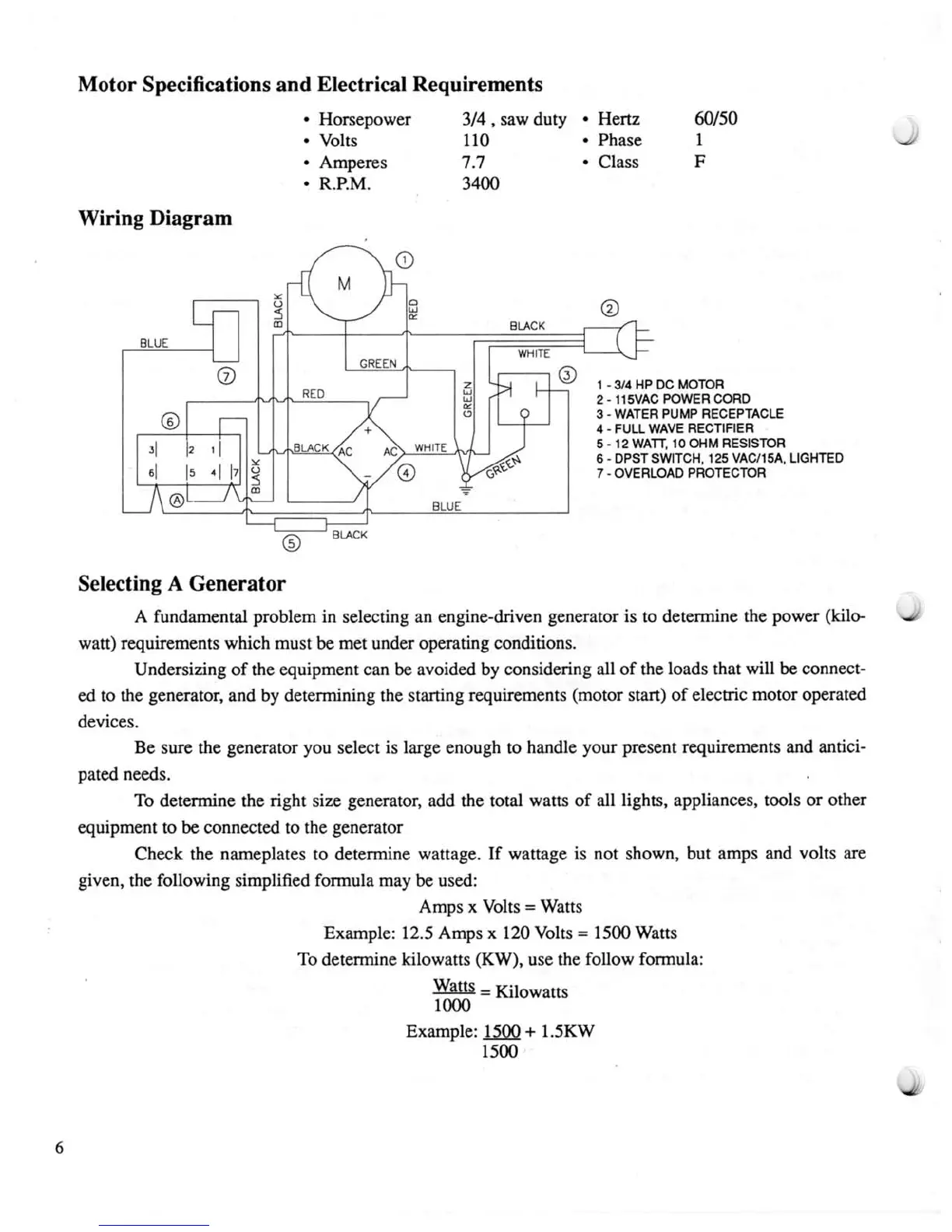 MK 660 - Motor Specifications and Electrical Requirements; Wiring Diagram