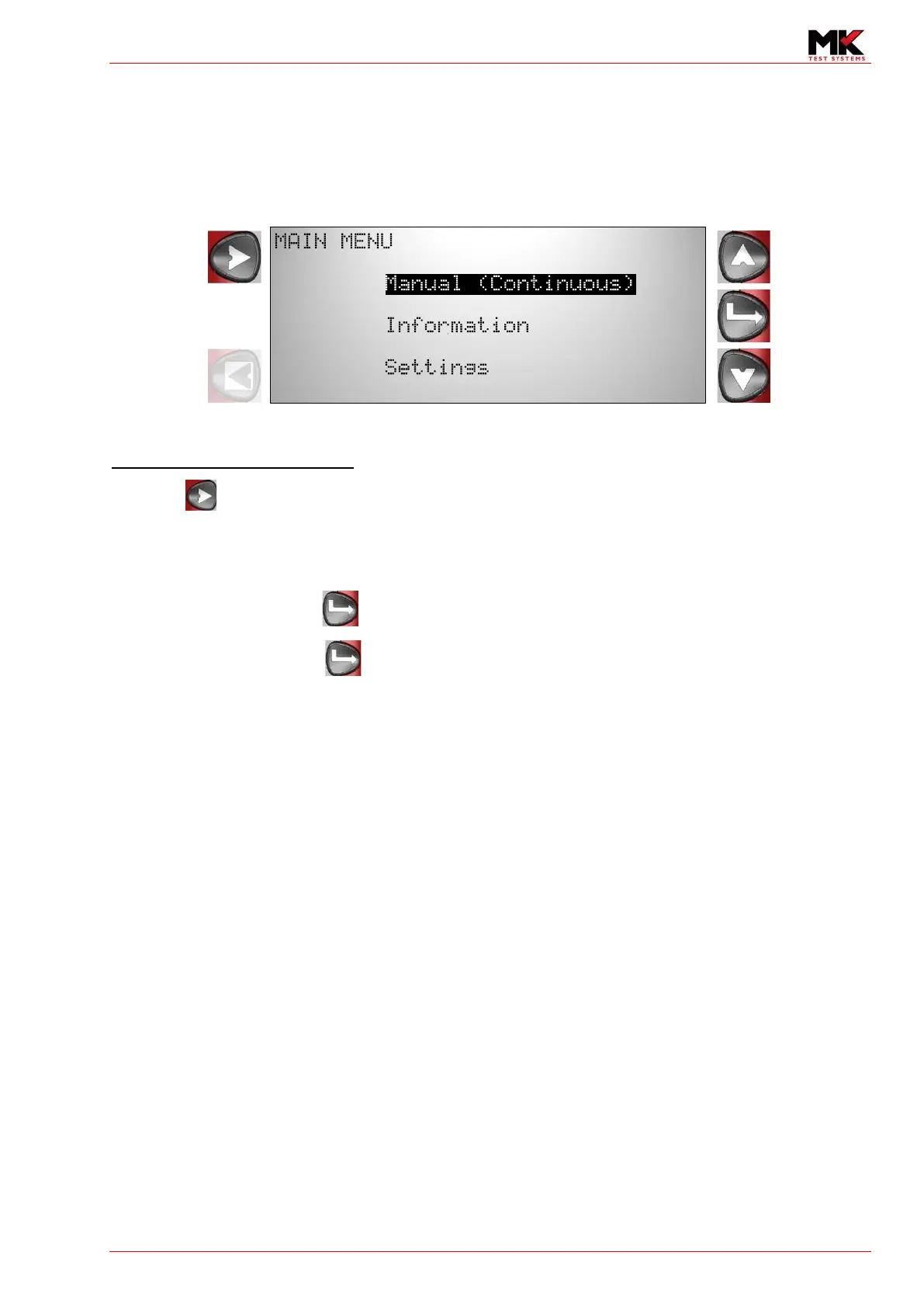Highlight Manual and press to proceed to the Manual Menu. Go to section 9 Manual Menu.
