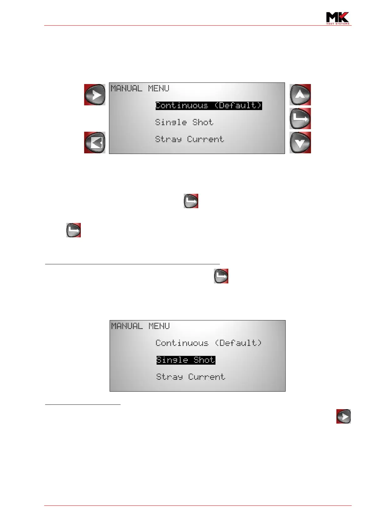 The Manual menu will display the following options with one selected to the default mode